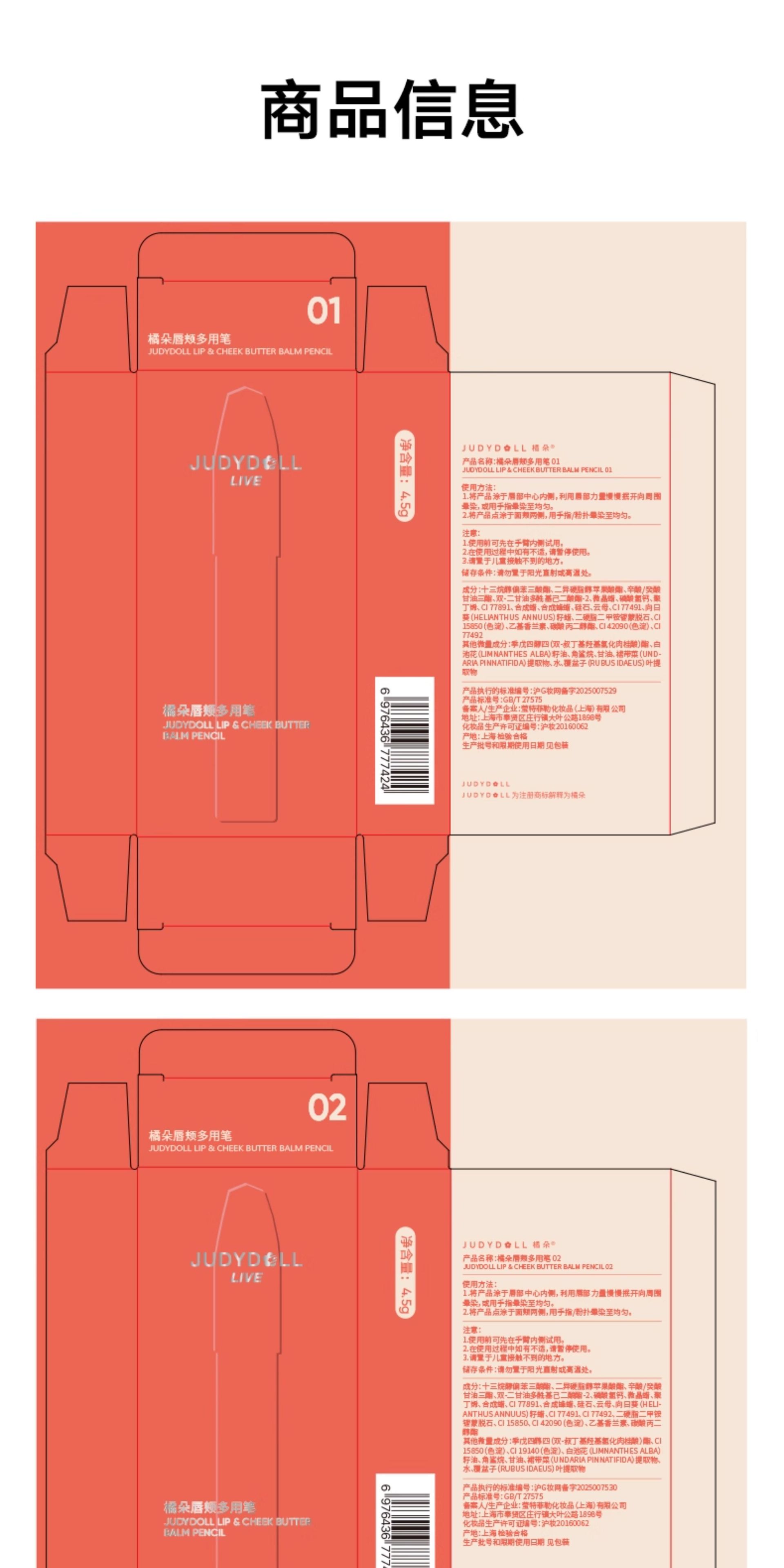 Judydoll橘朵橘标唇颊多用笔唇釉口红笔裸色嘟嘟唇双头多用唇线笔