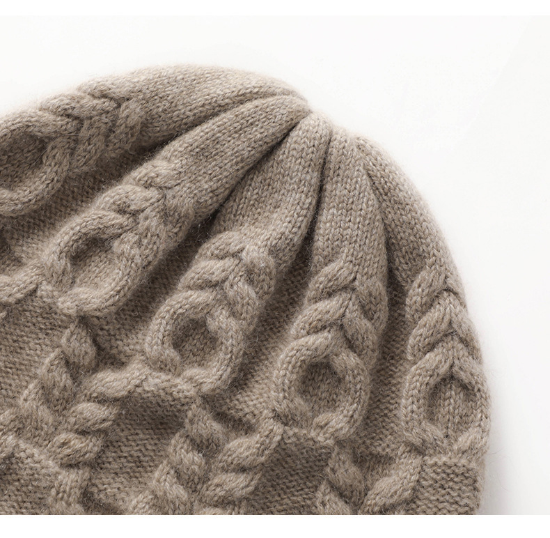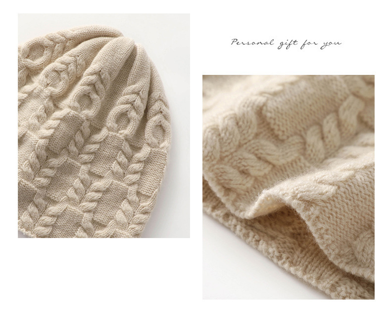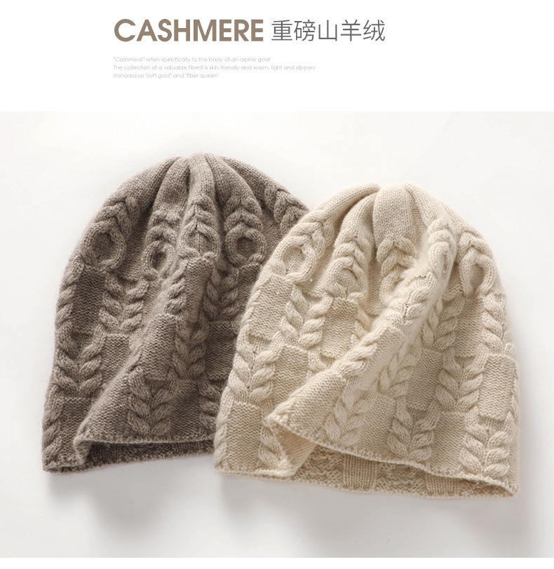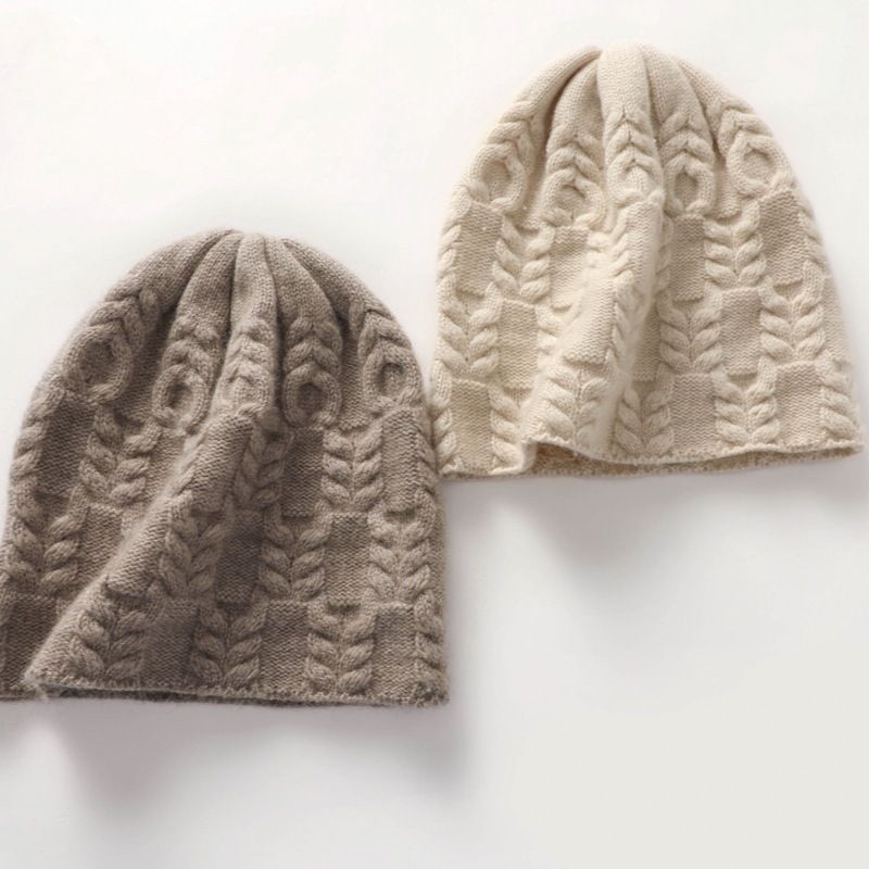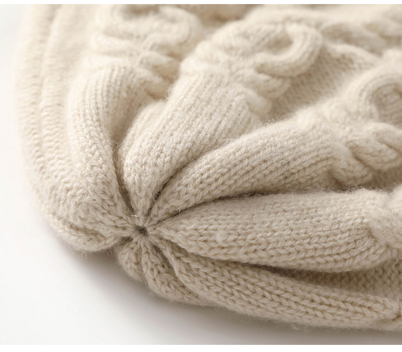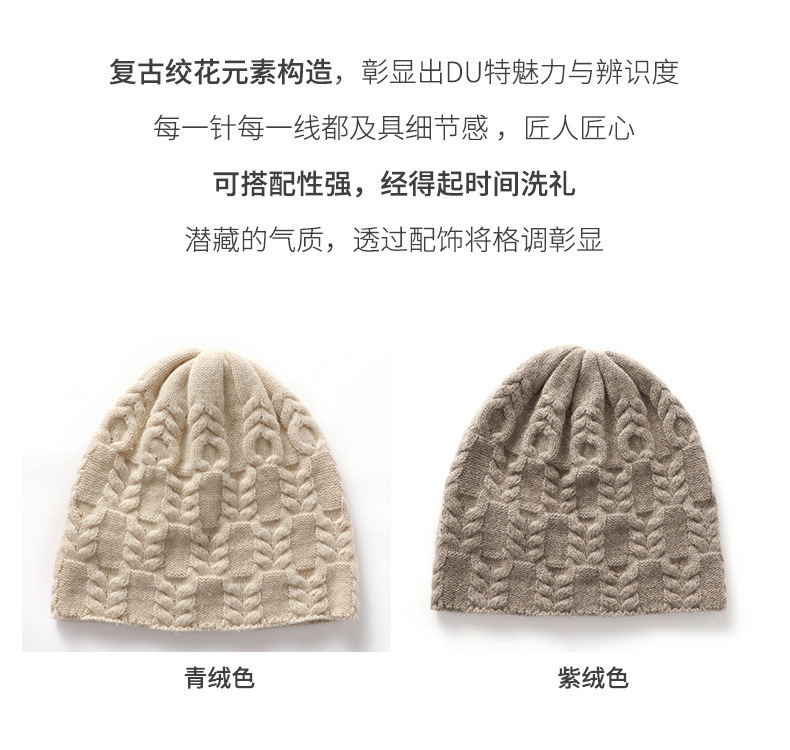 女士绞花山羊绒帽子女针织加厚提花休闲护耳帽时尚百搭渔夫帽
