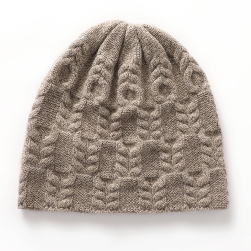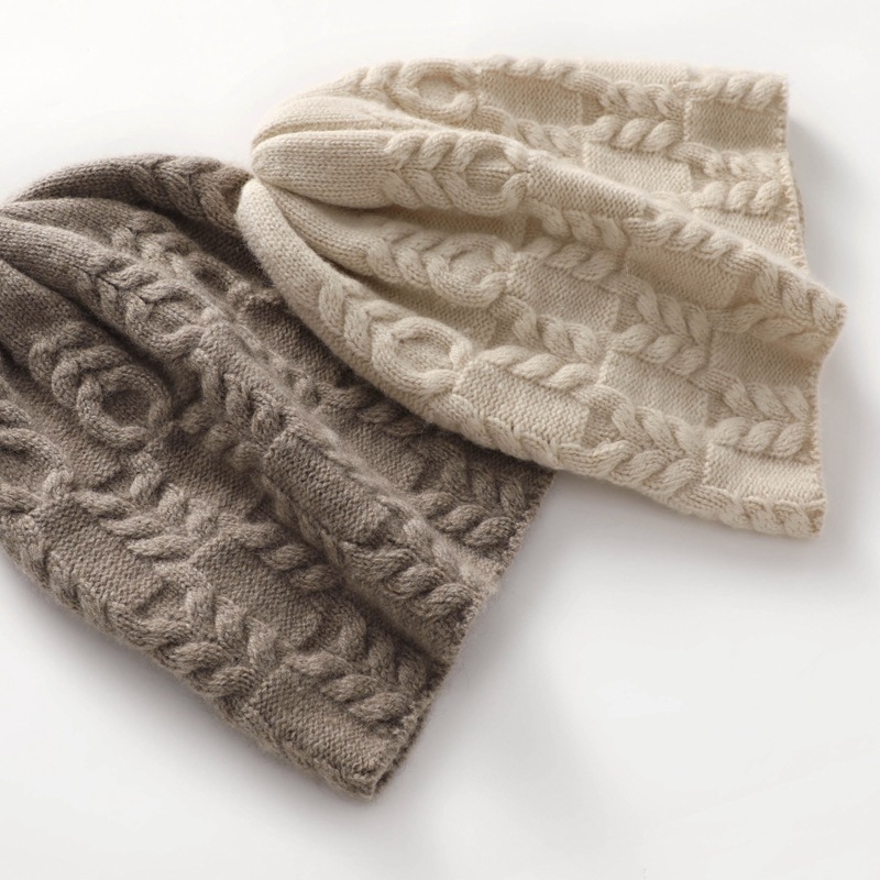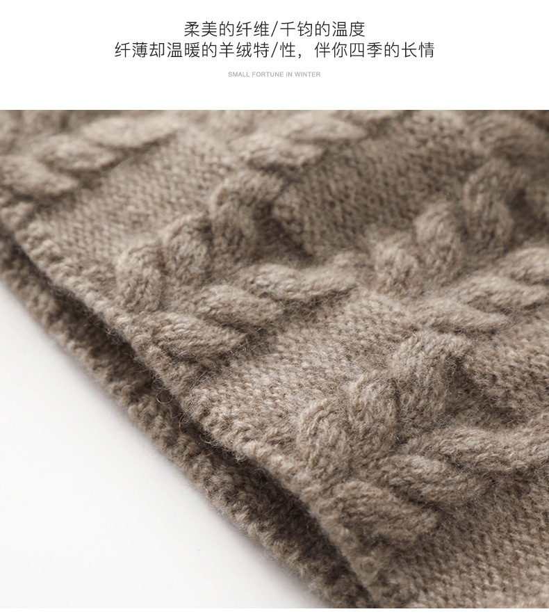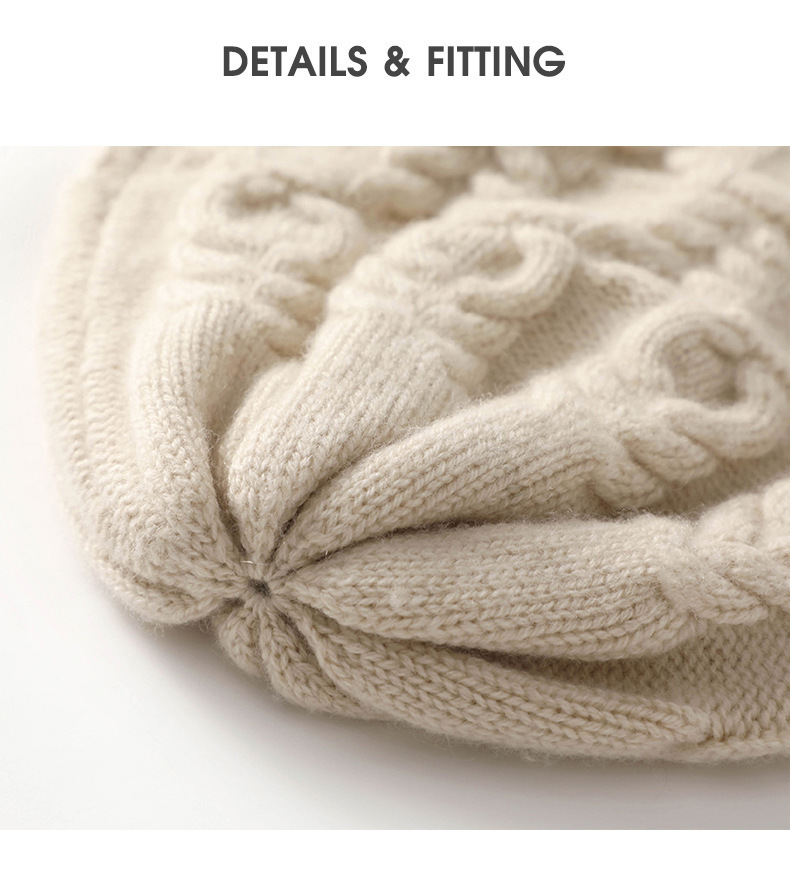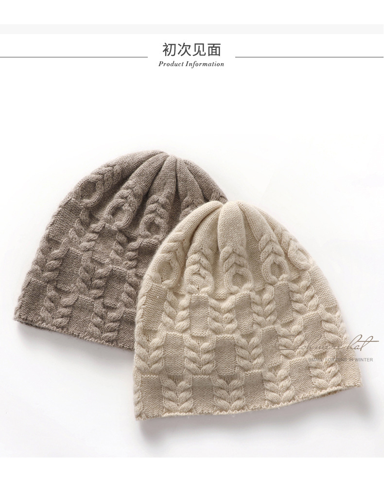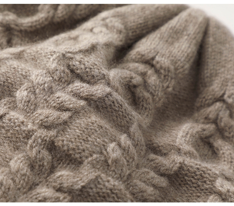 女士绞花山羊绒帽子女针织加厚提花休闲护耳帽时尚百搭渔夫帽