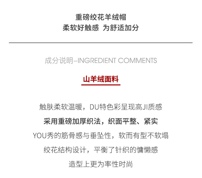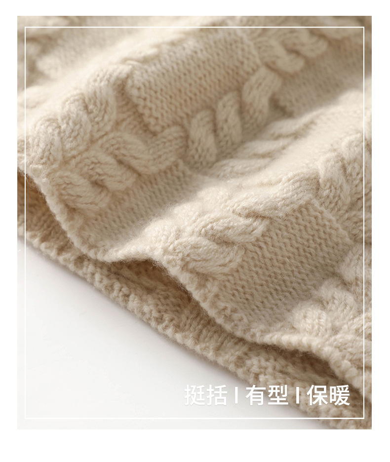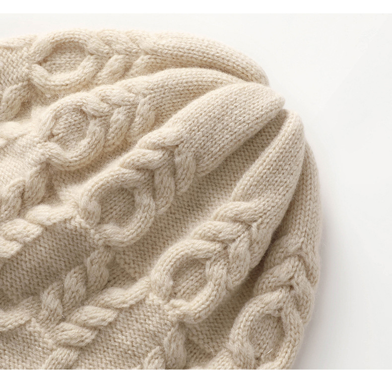 绞花设计感女士加厚山羊绒帽子纯色休闲护耳帽时尚百搭针织渔夫帽