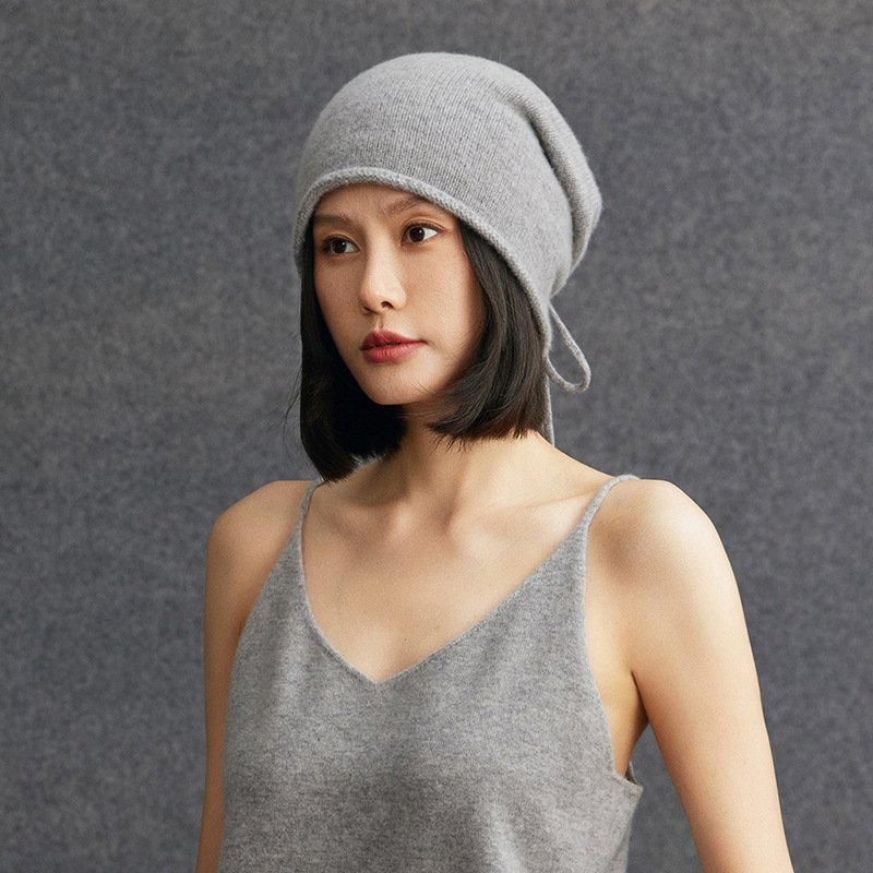 山羊绒女式卷边抽绳堆堆帽秋冬新款纯色百搭保暖休闲帽子防寒御冷