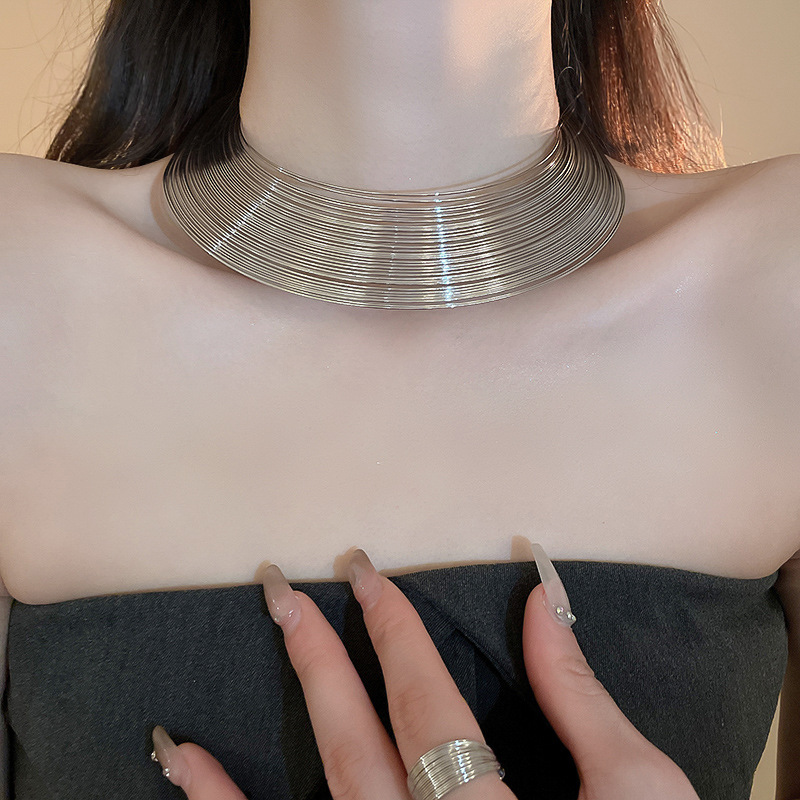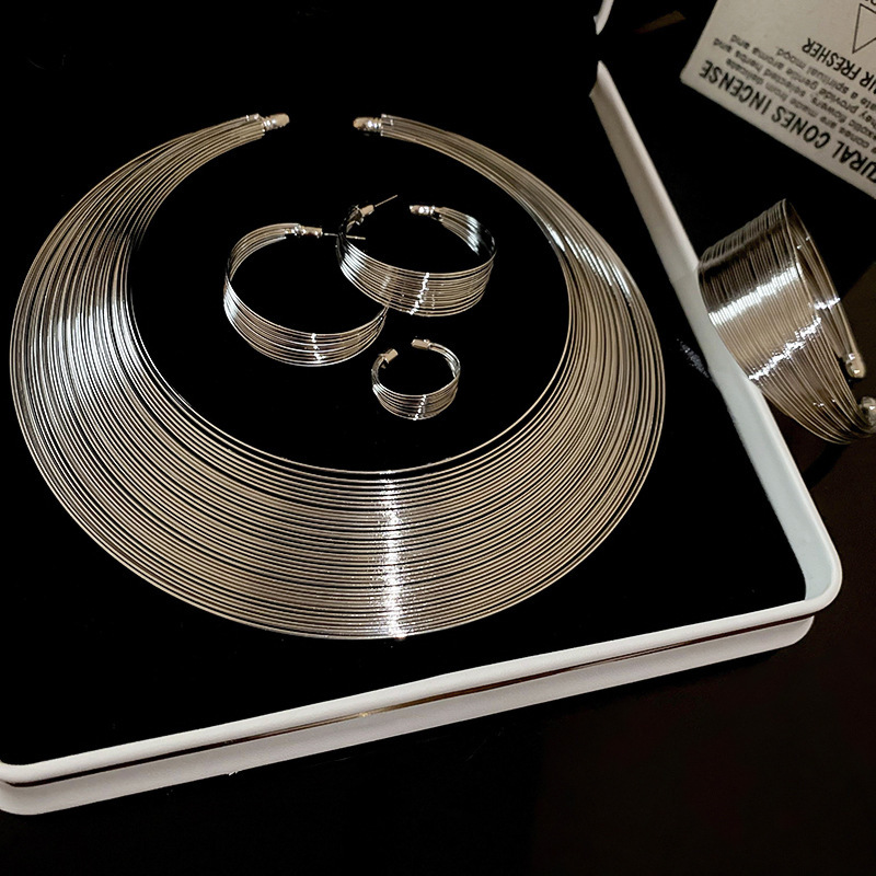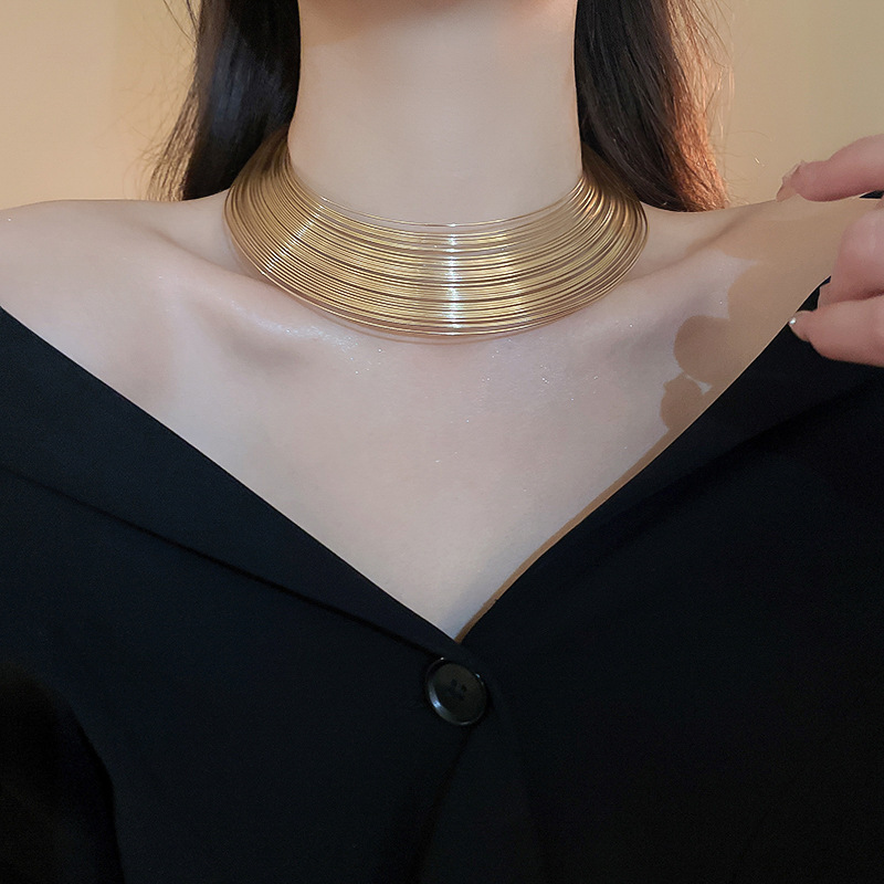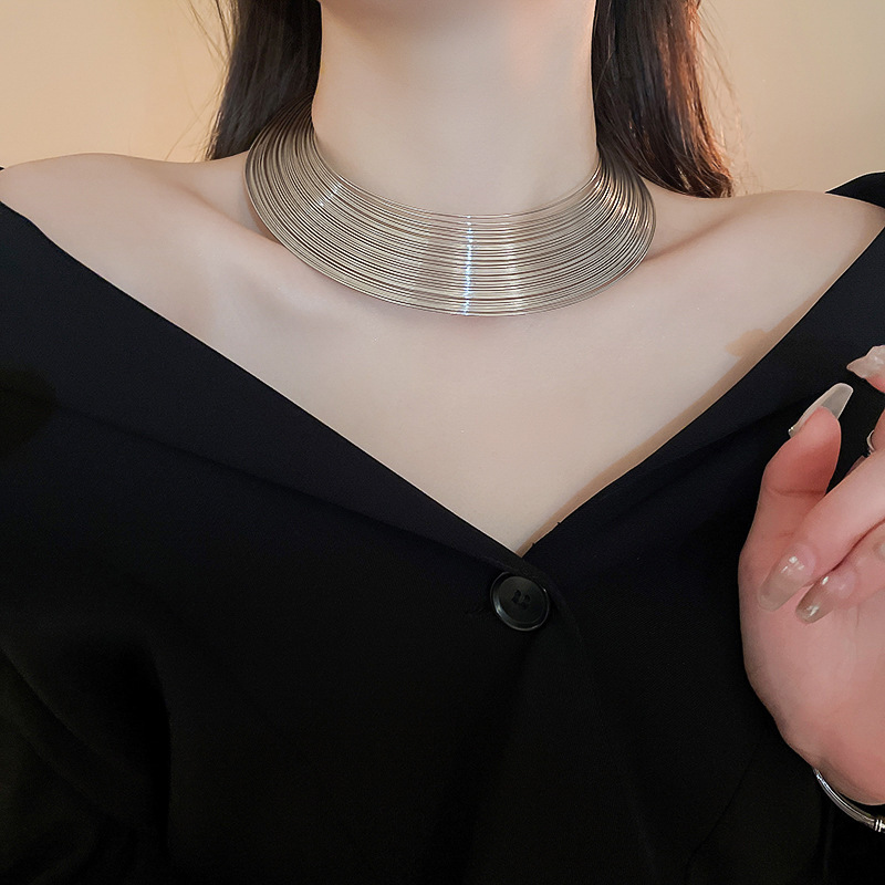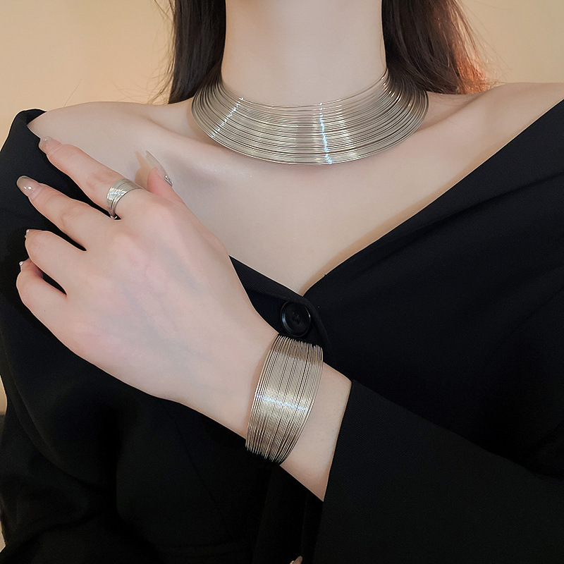 欧美跨境金属几何多层项链套装复古小众时尚锁骨链轻奢高级感项饰