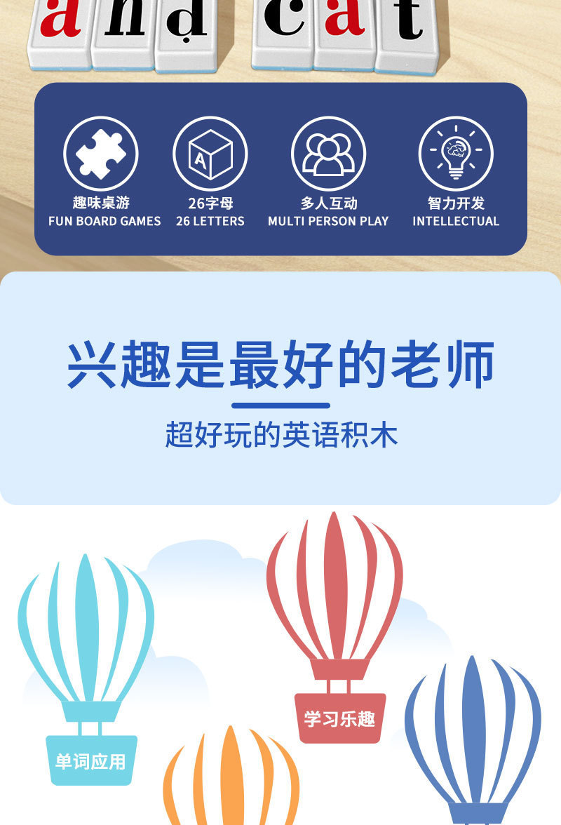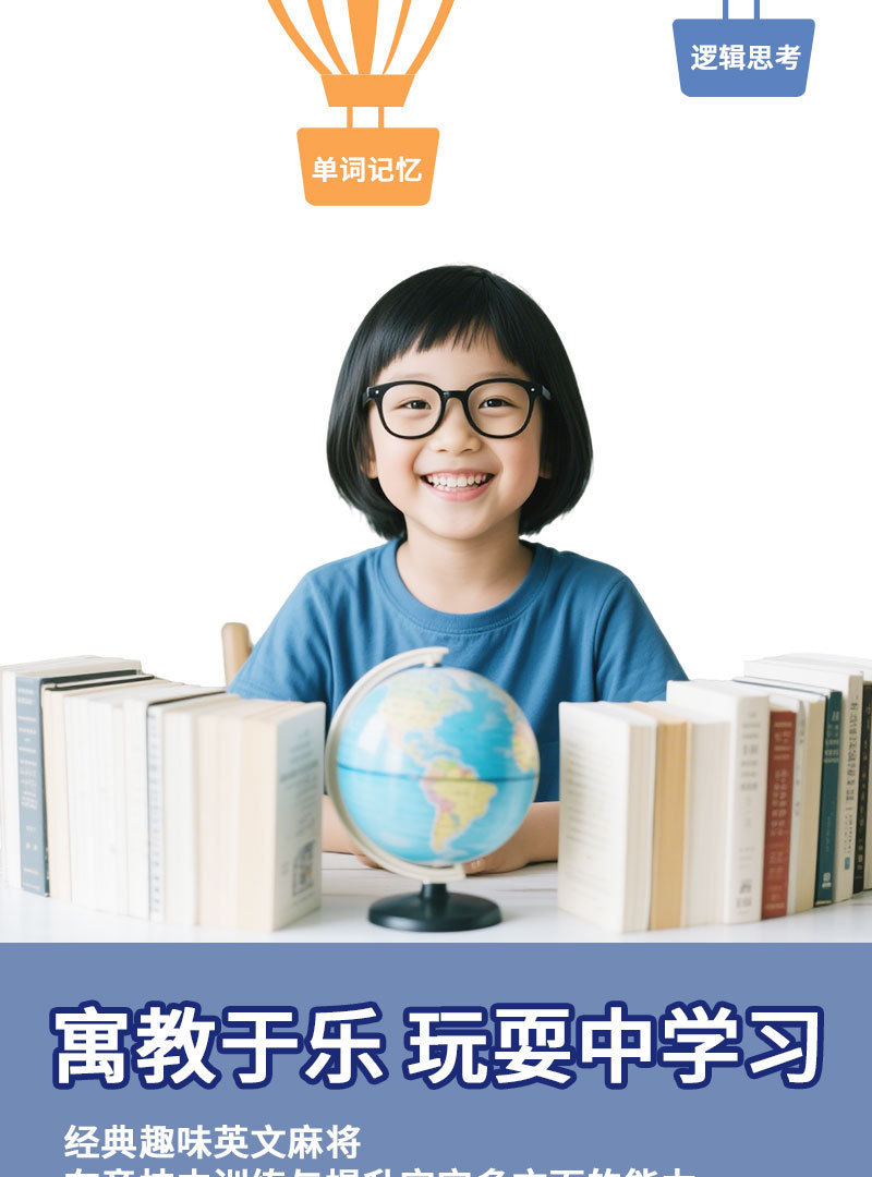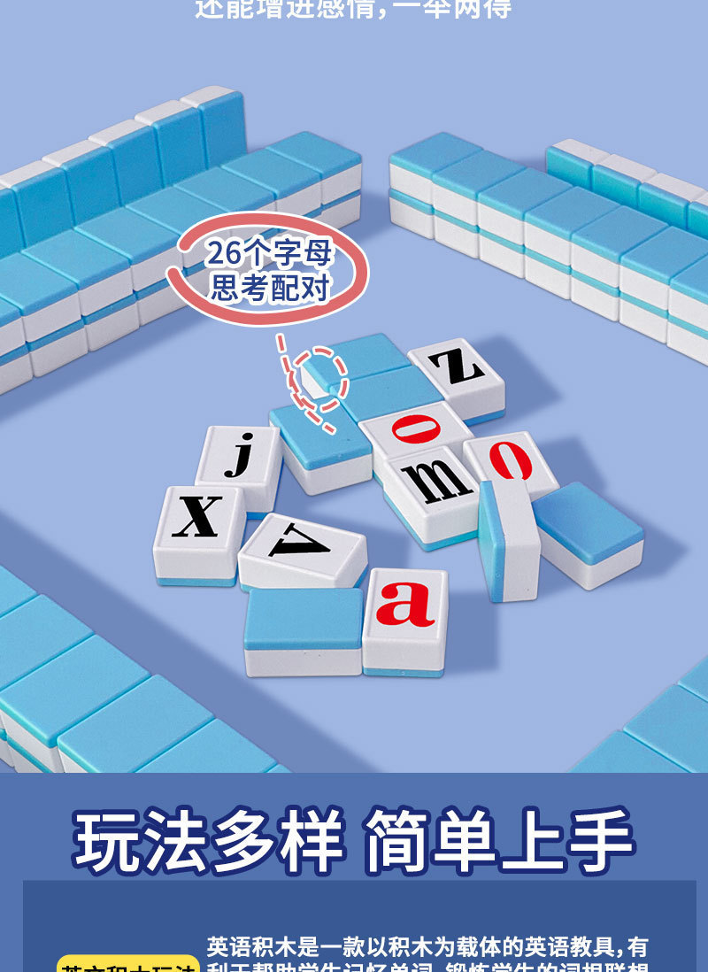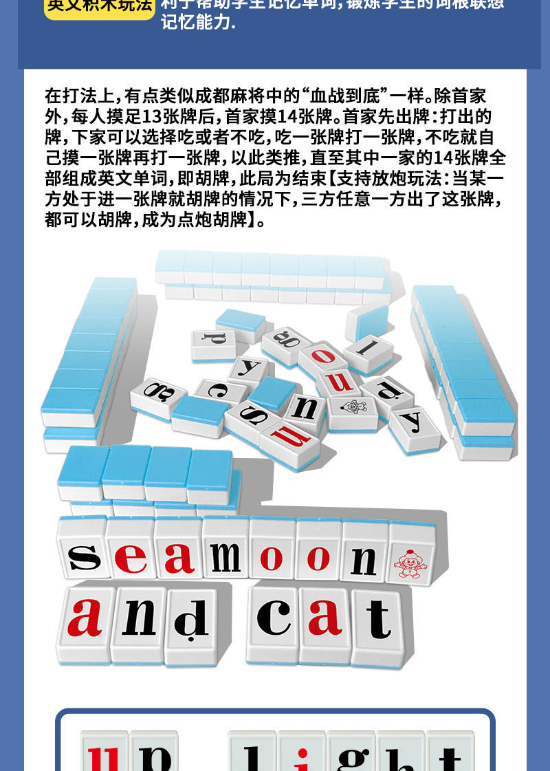 儿童玩具英文麻将英语单词训练学生宿舍亲子互动麻将牌手搓单词