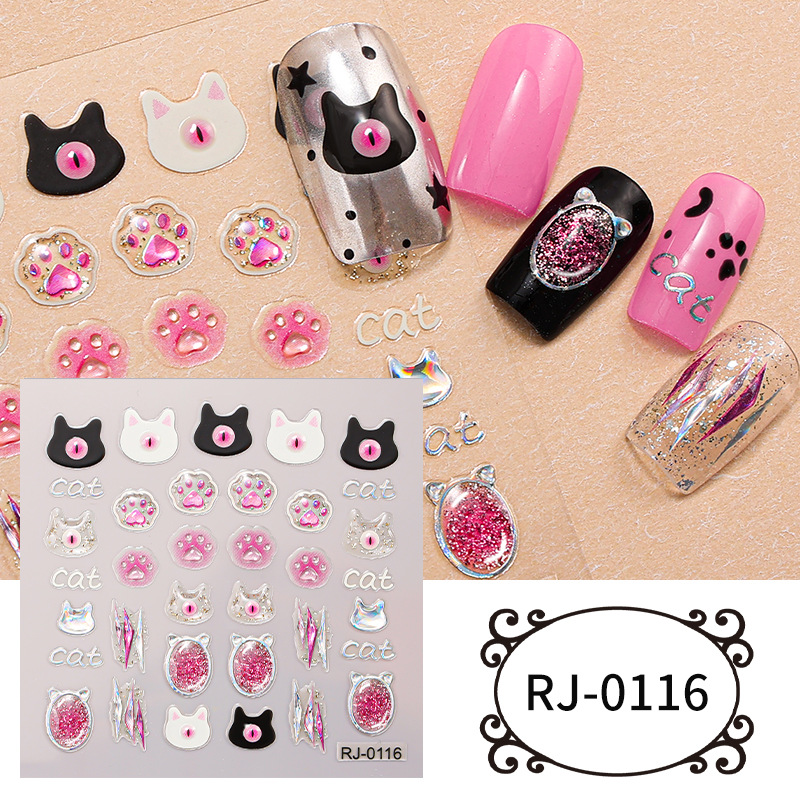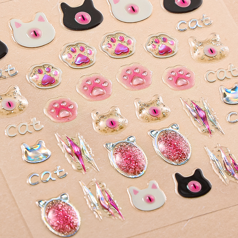 正祥跨境新款花朵蝴蝶结5D美甲贴纸浮雕贴花夏日水果卡通熊指甲贴