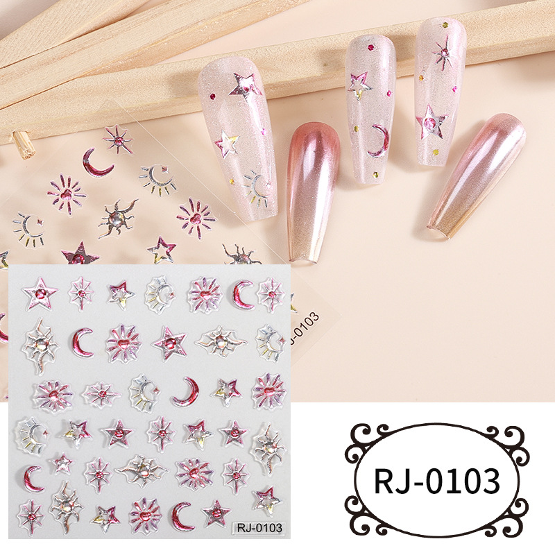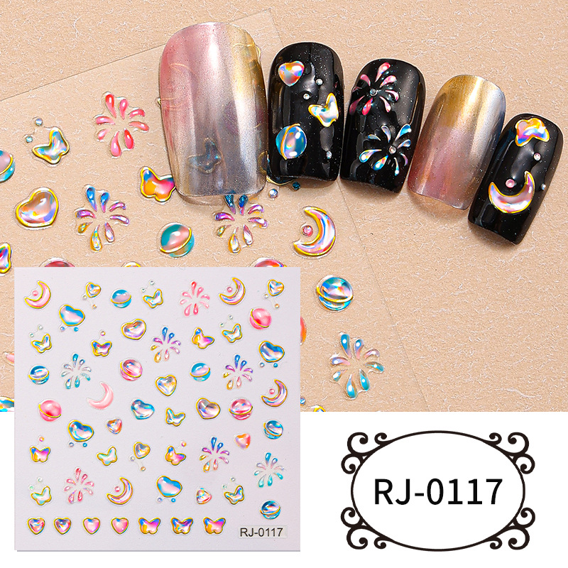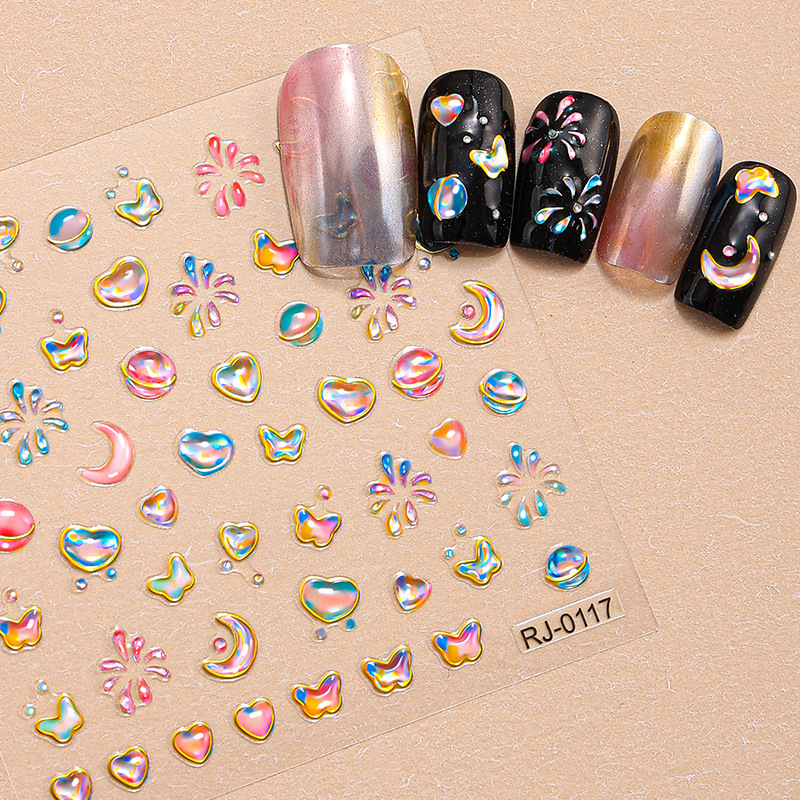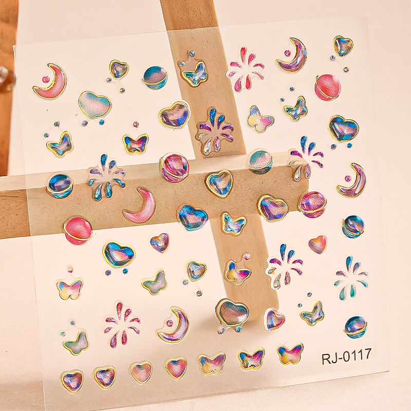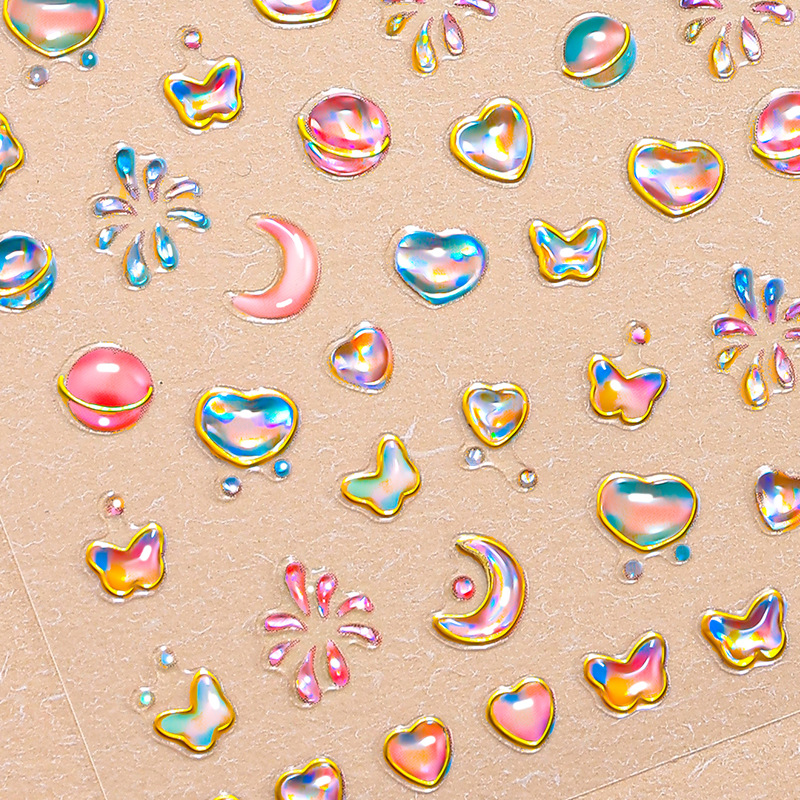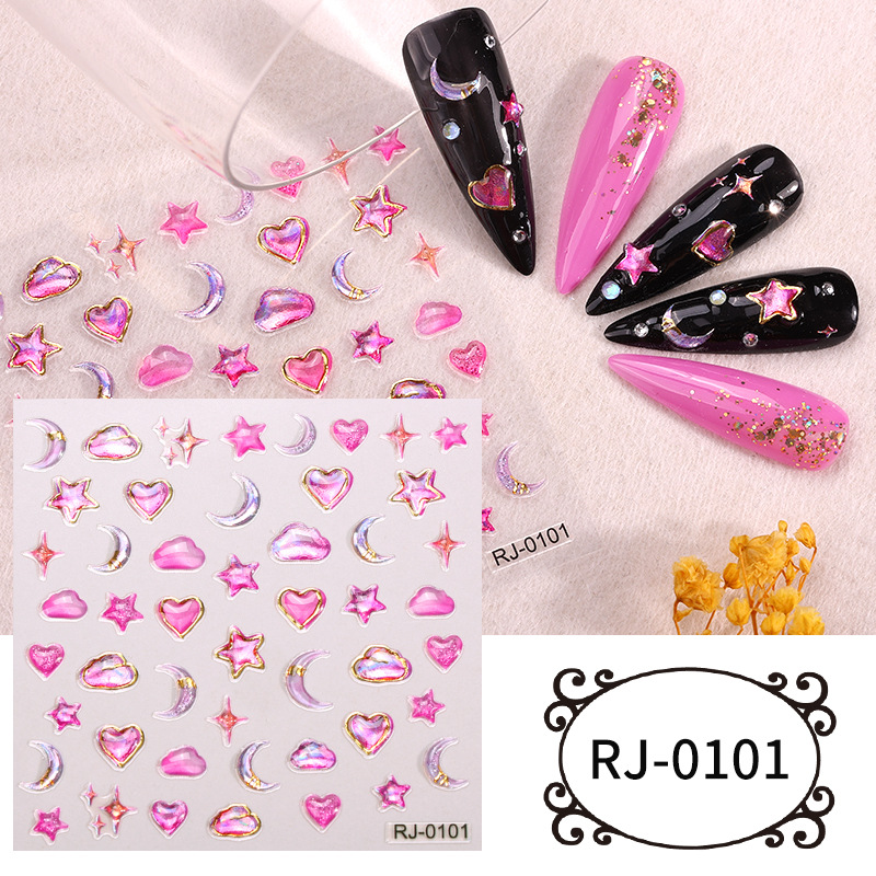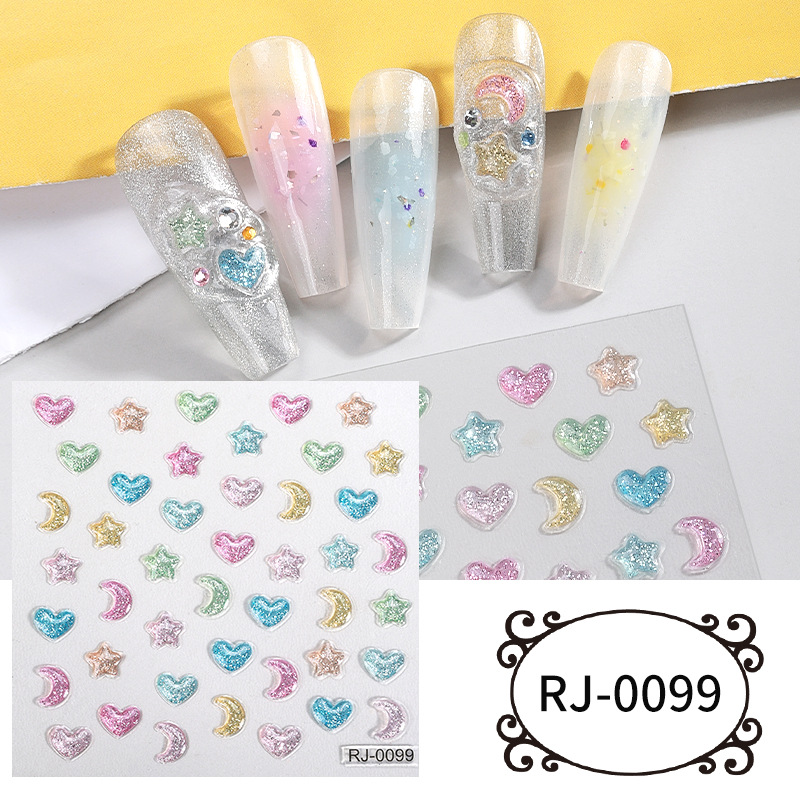 正祥跨境新款星星月亮软胶美甲贴纸浮雕5d立体Q弹果冻INS风指甲贴