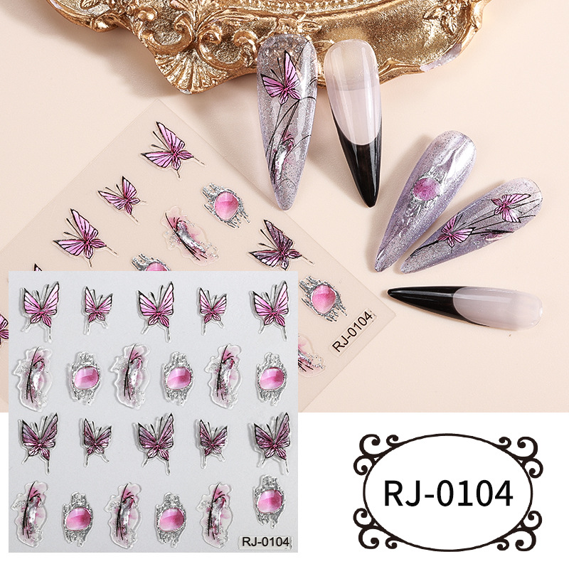 正祥夏日新款5D软胶美甲贴纸浮雕蝴蝶花朵海洋贝壳光仙女系指甲贴