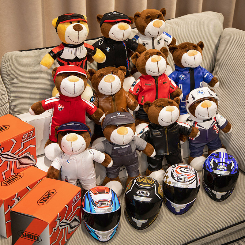 機関車の熊のヘルメットのオートバイの後部座席は公仔のbmwの引っ張り熊のぬいぐるみのおもちゃの摩旅の尾箱のペンダントを飾ります。