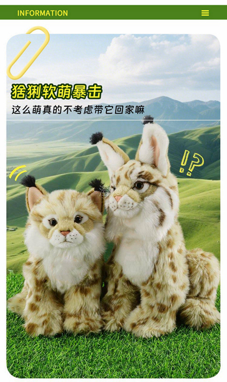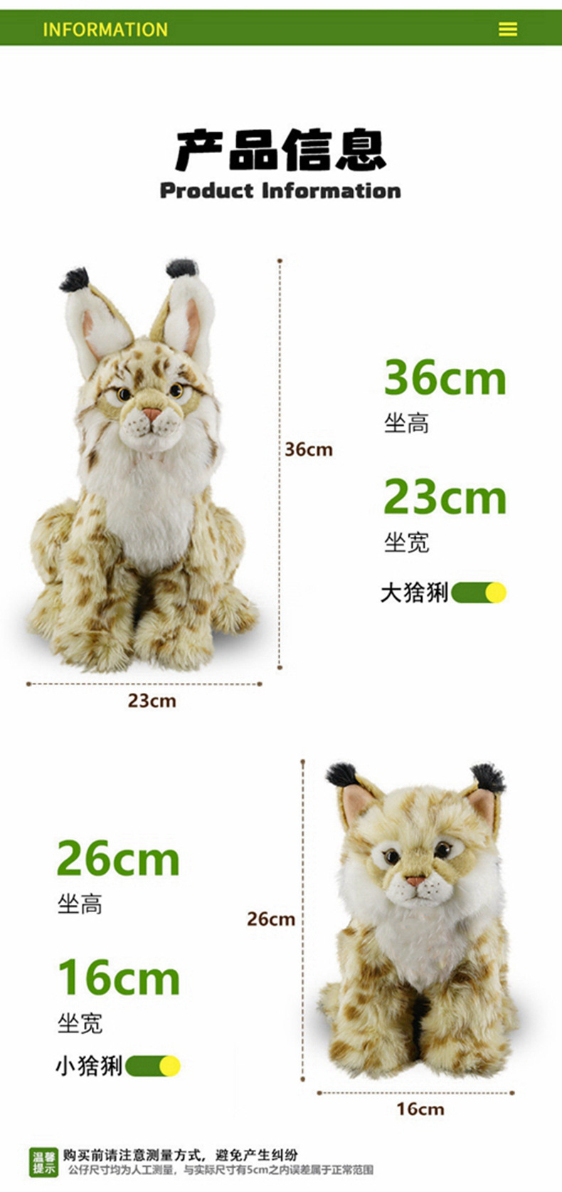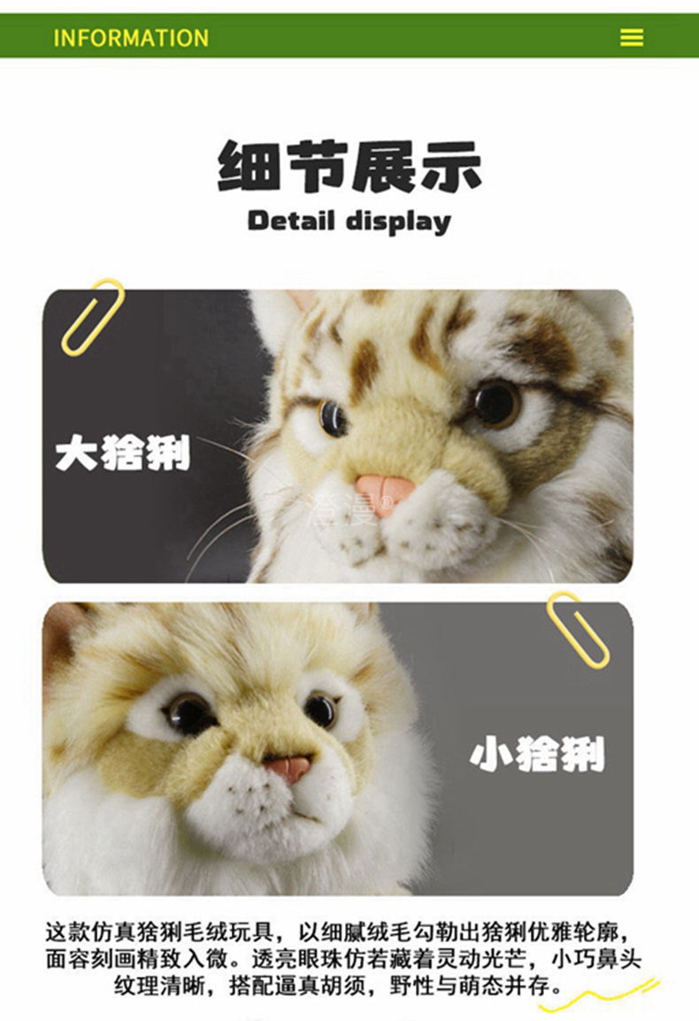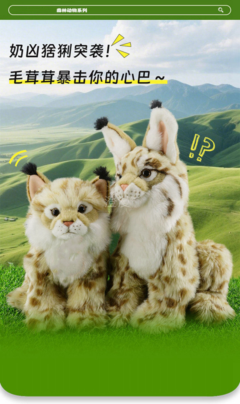 仿真动物猞猁毛绒玩具公仔黄豹玩偶野狸子山猫布娃娃儿童生日礼物