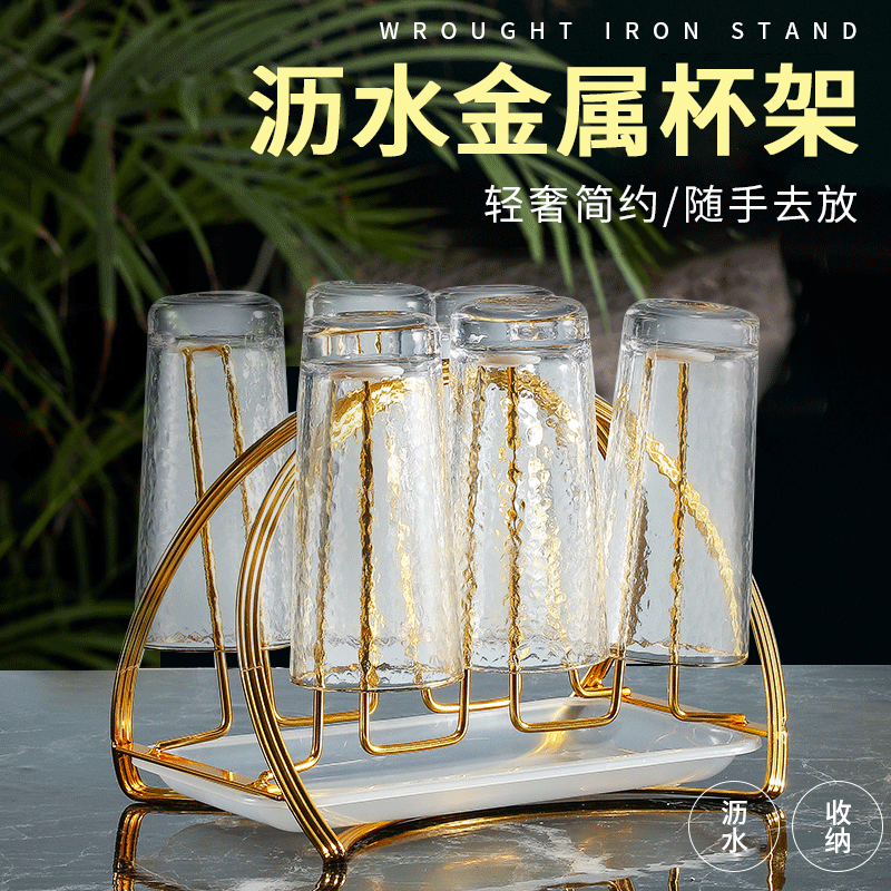 铁艺杯架高档水杯倒挂沥水架家用茶具收纳托盘置物架马克杯收纳架