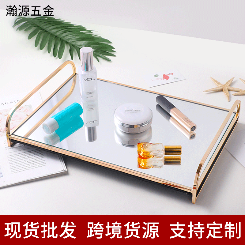 金色のガラス鏡面収納トレイ、電気メッキ防水浴室収納トレイ、卸売収納ボックス、北欧風