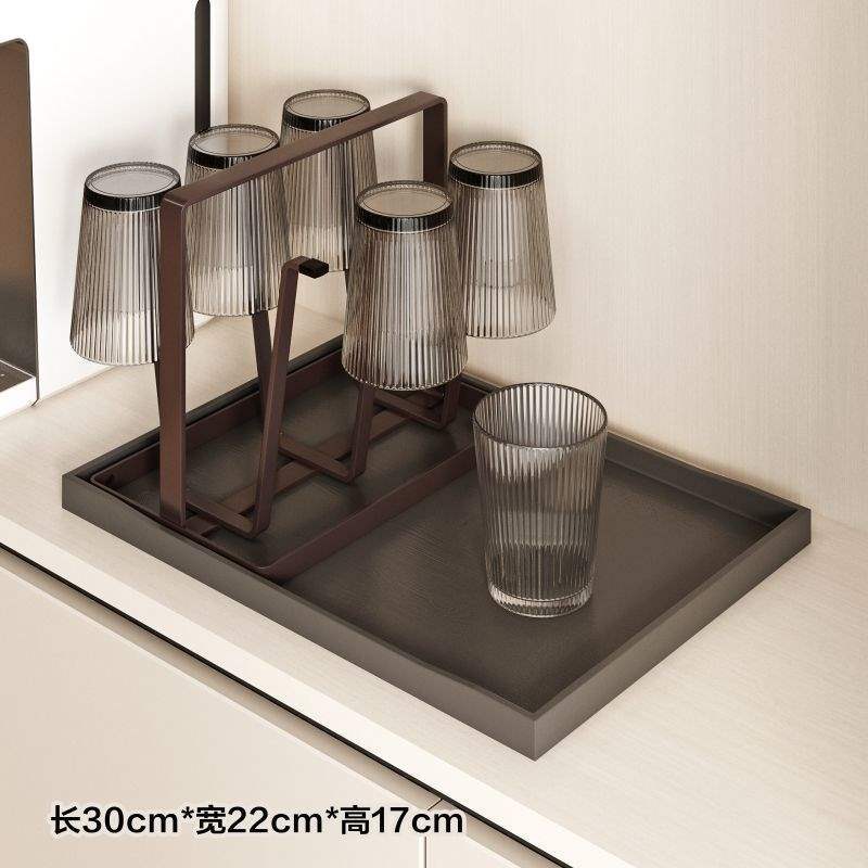 玻璃杯茶杯置物杯架台面沥水收纳架茶几倒挂架子套装带杯子托盘