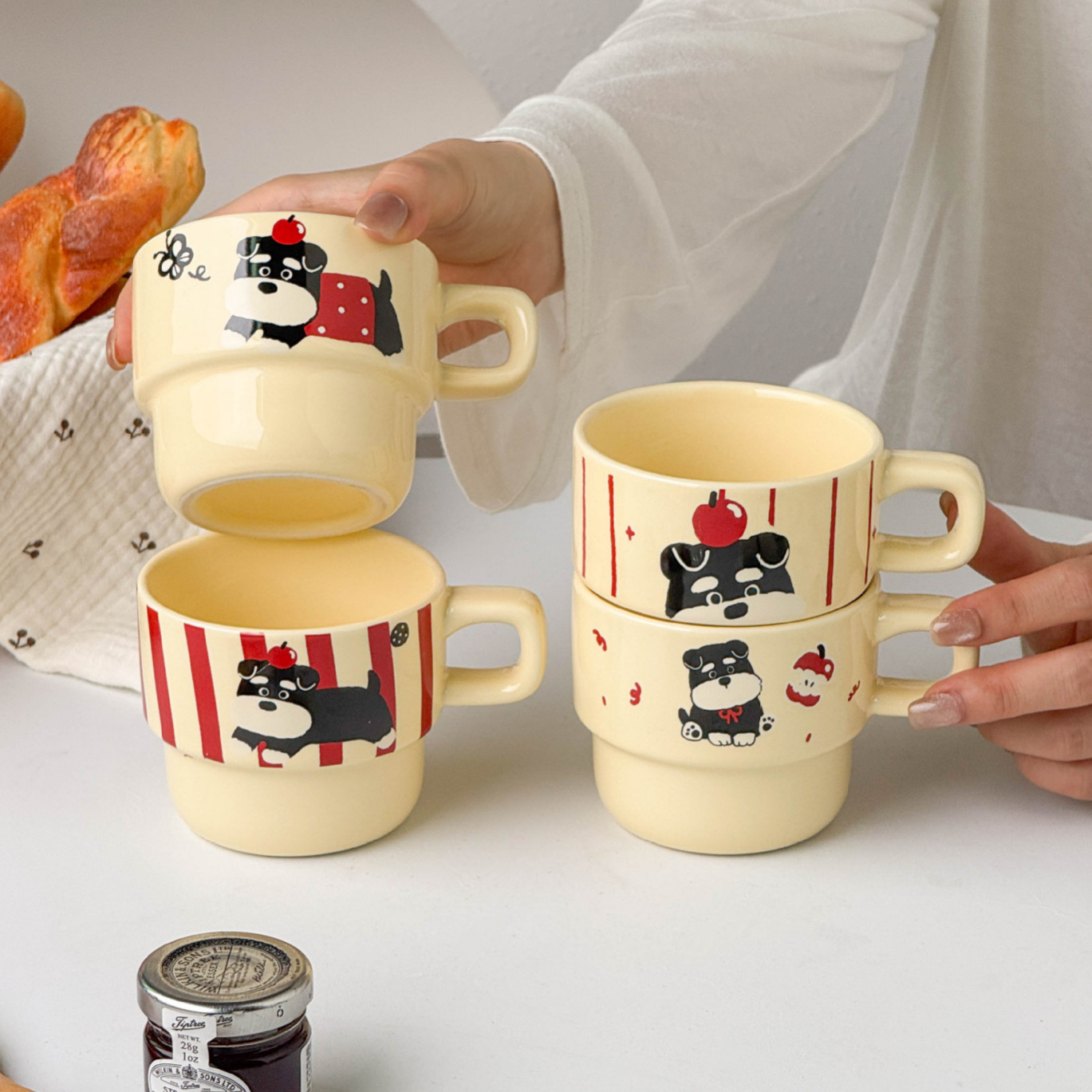 シュナウザー高価値セラミックスタッキングカップホームセット漫画子犬オフィスセラミックウォーターカップコーヒーカップ