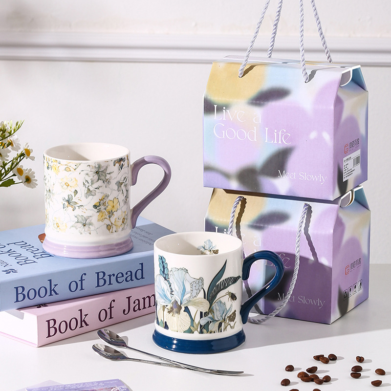 鸢尾花陶瓷马克杯活动定制伴手礼开业礼品创意花卉高颜值水杯礼物