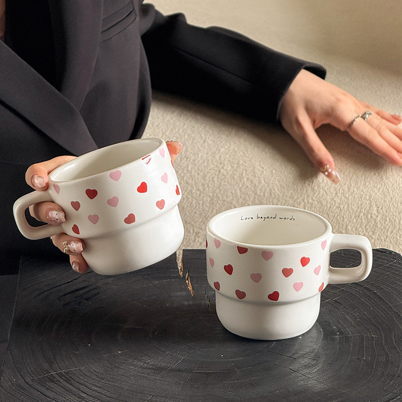 浪漫心语叠叠杯陶瓷杯可爱卡通马克杯高颜值情侣咖啡杯水杯礼品