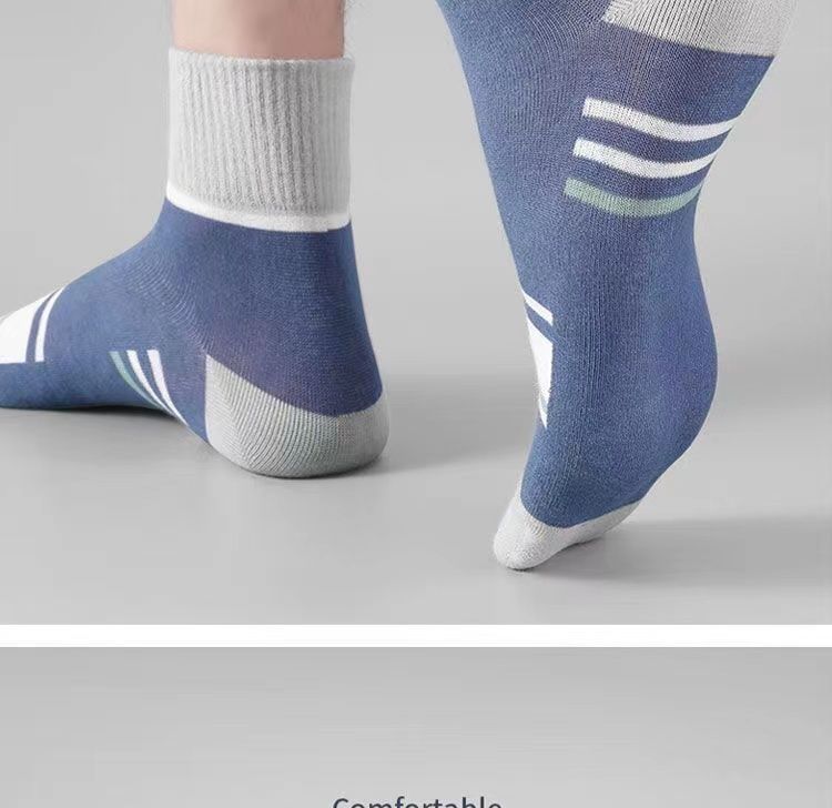 袜子男士春秋运动款中筒袜吸汗透气拼色条纹袜秋冬季男袜中筒批发