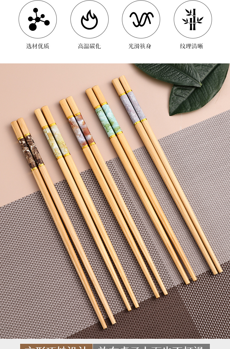天然竹筷子防滑家庭用一人一筷子5双装源工厂批发批环保国潮风