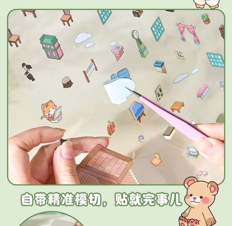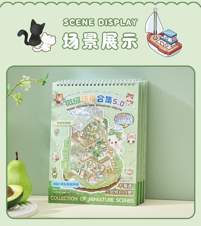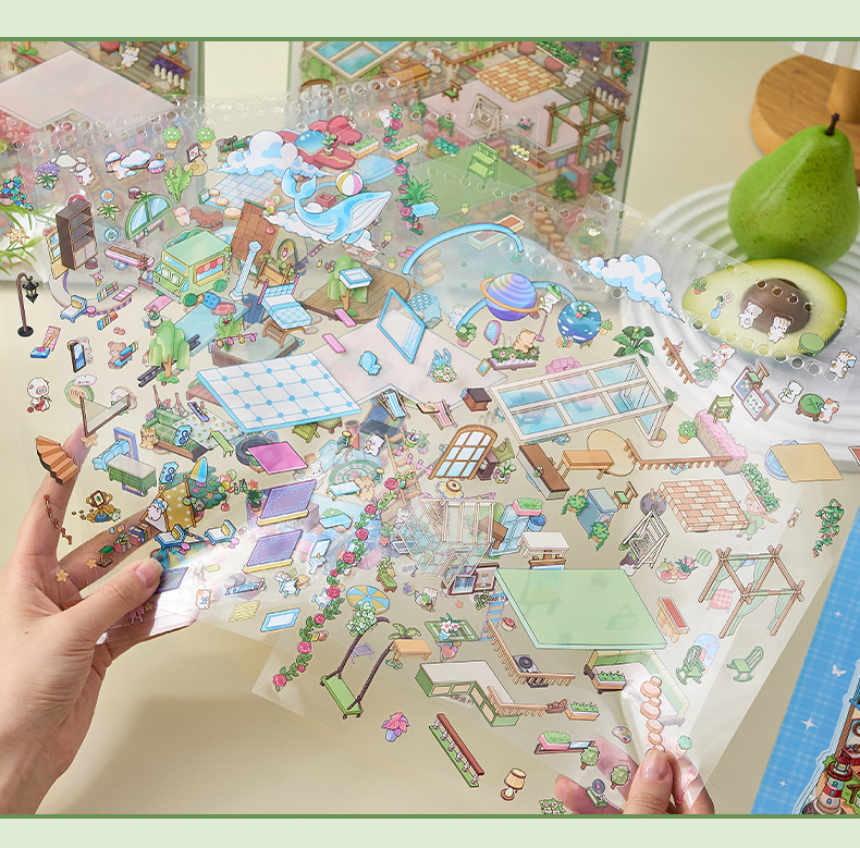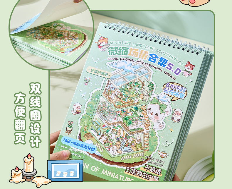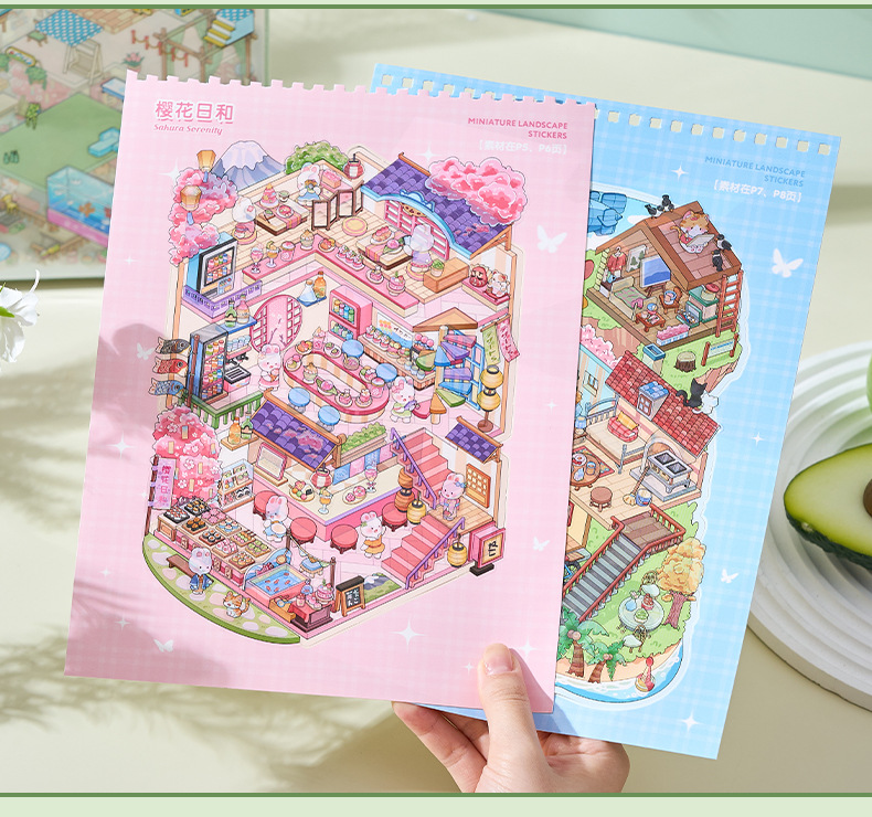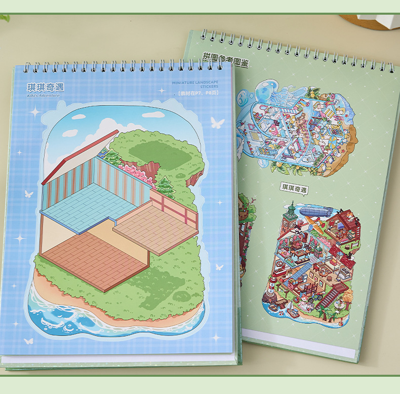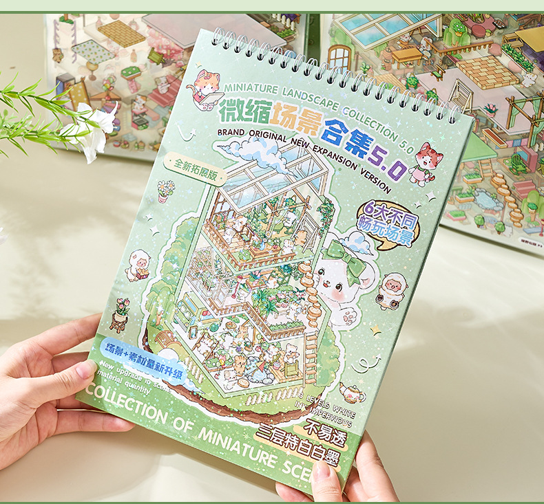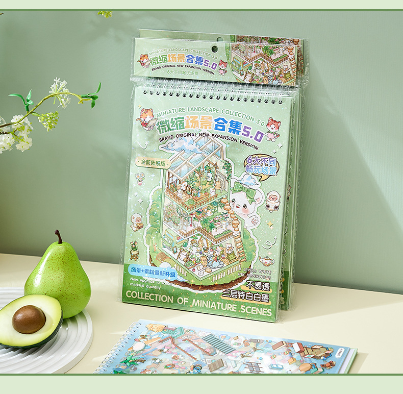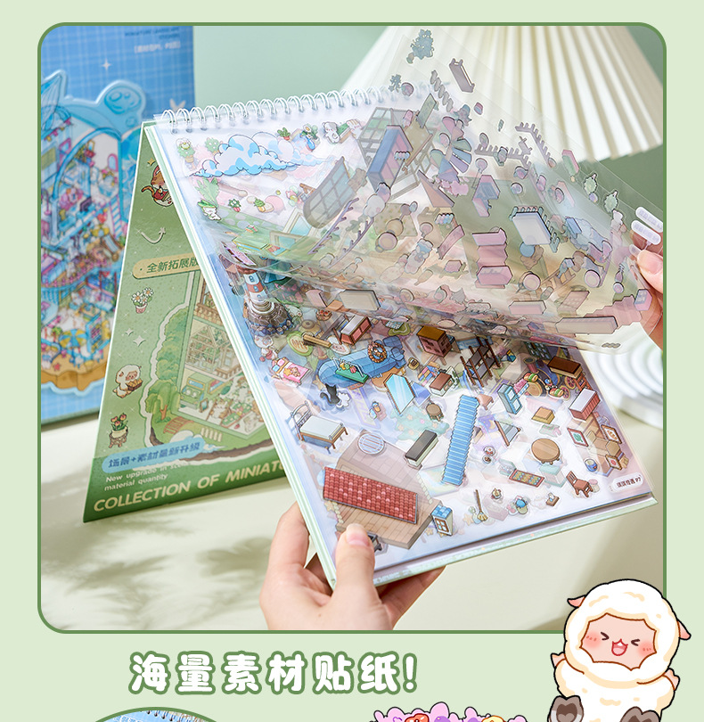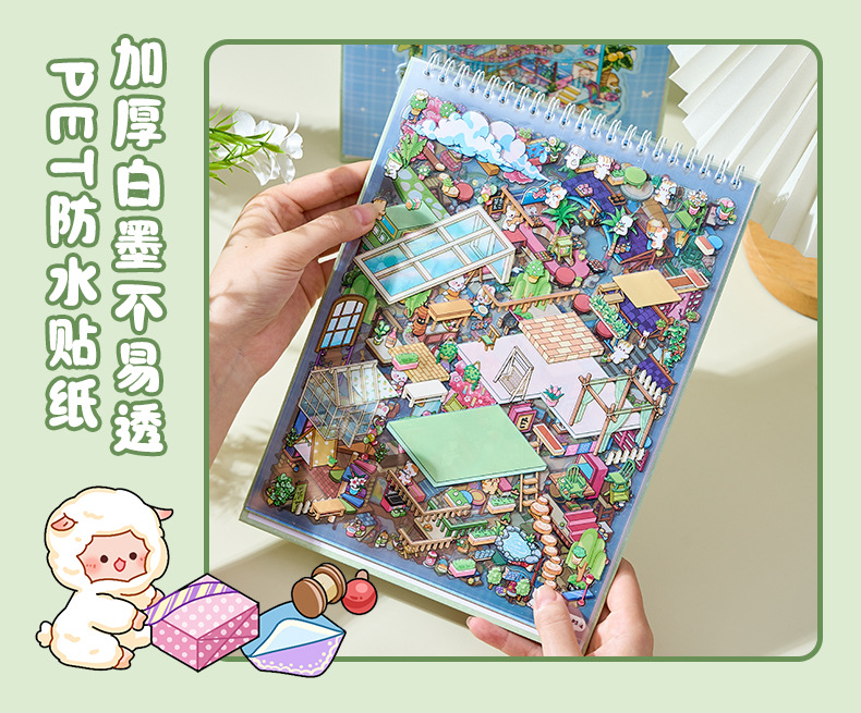 ミニチュア造景ステッカー本合集3d立体小屋ステッカー子供手作りシーンステッカー本タイル小図案