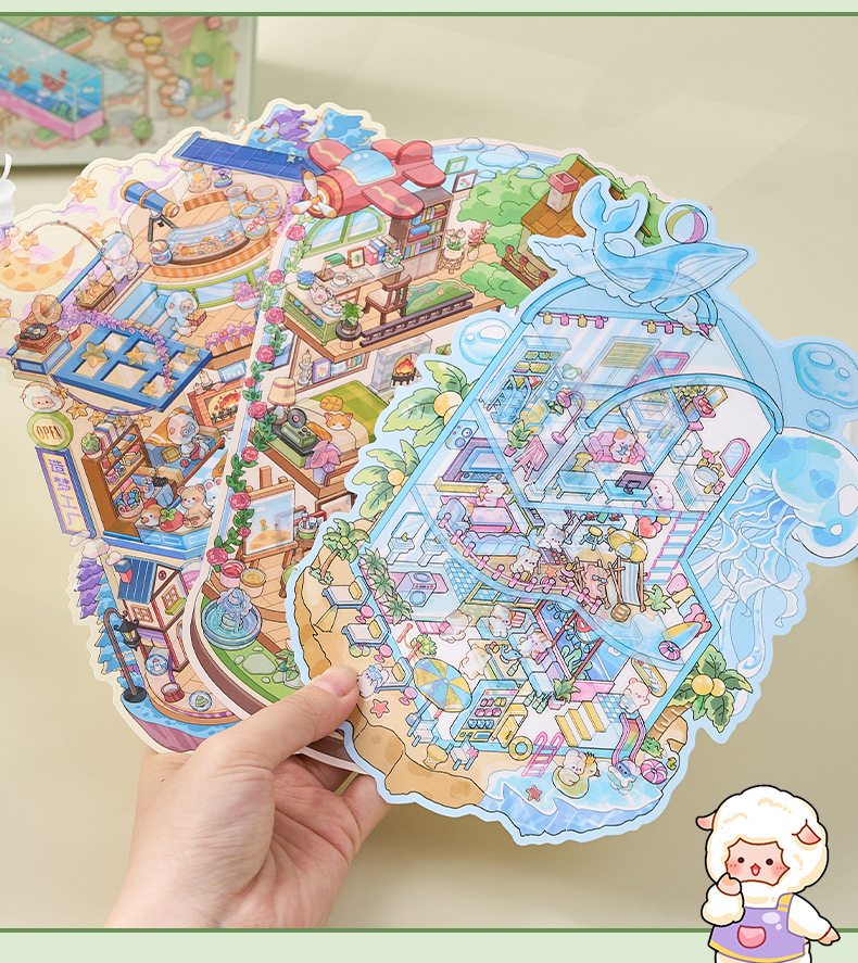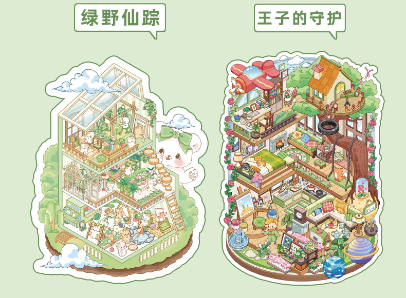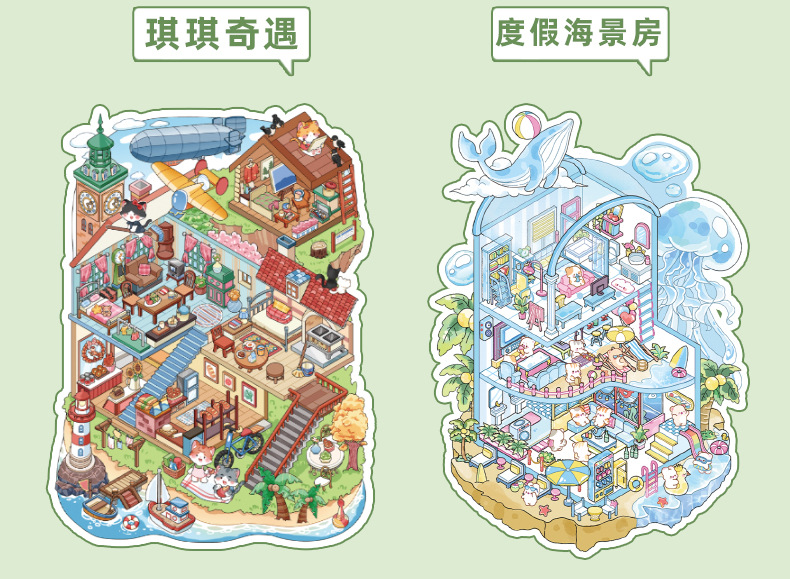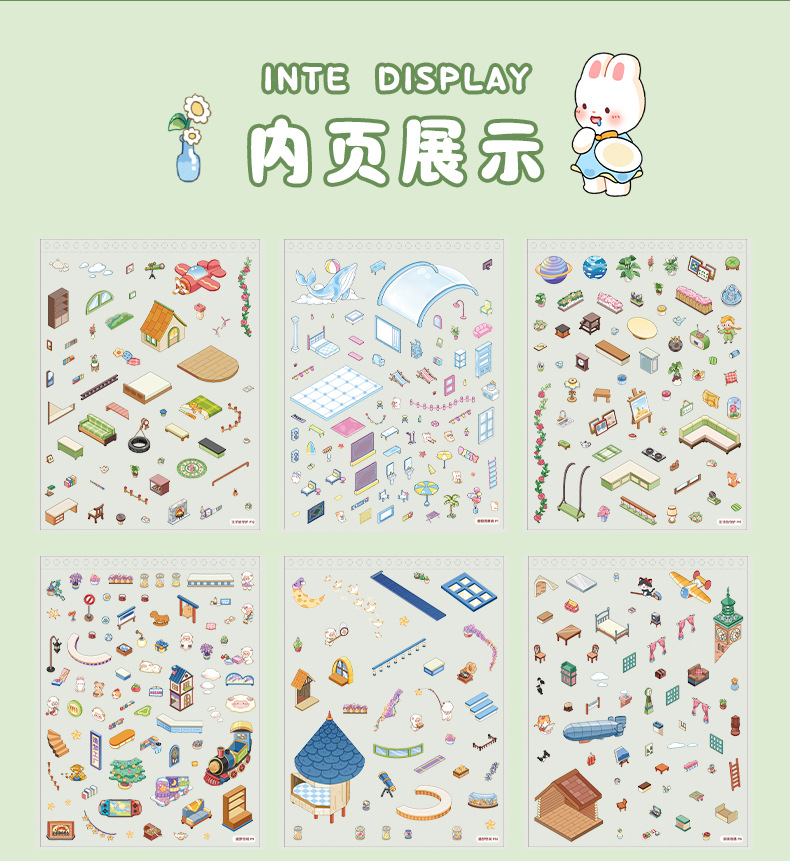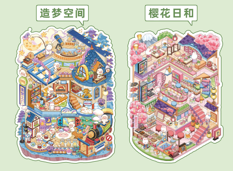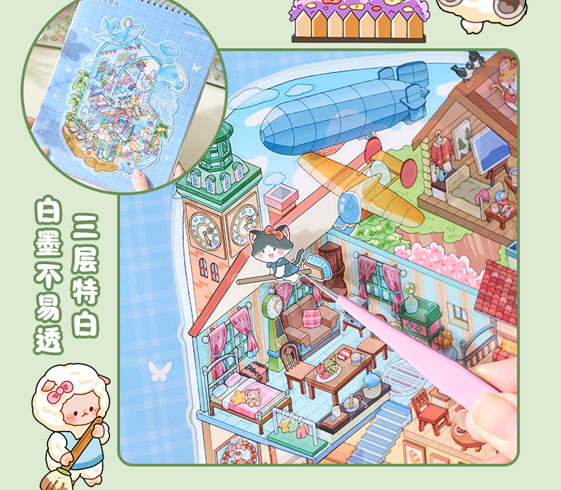 创意微缩造景贴纸合集本模拟经营场景立体小屋贴纸儿童手工安静书