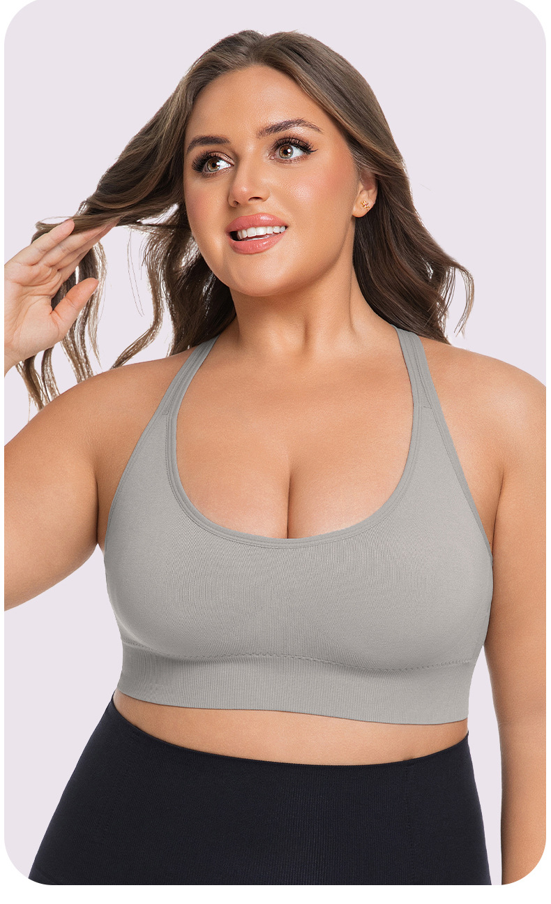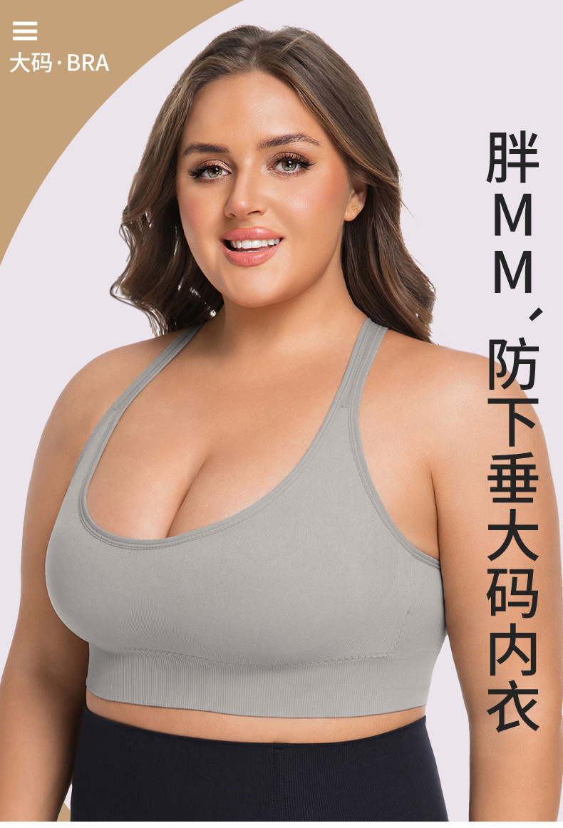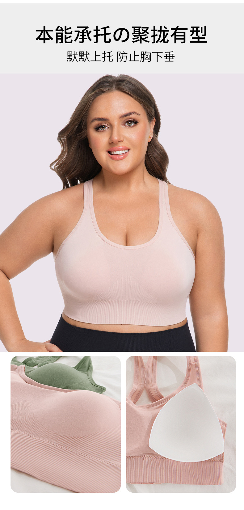 欧美跨境大码无缝内衣女士胸罩舒适防下垂收副乳运动文胸轻运动风