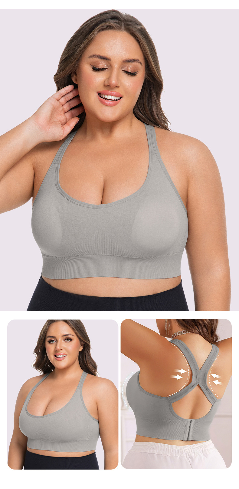 跨境欧美加大码无钢圈透气舒适美背运动文胸跑步健身打底女士内衣
