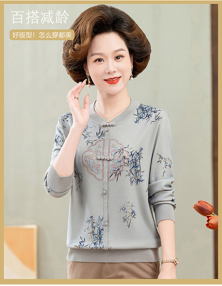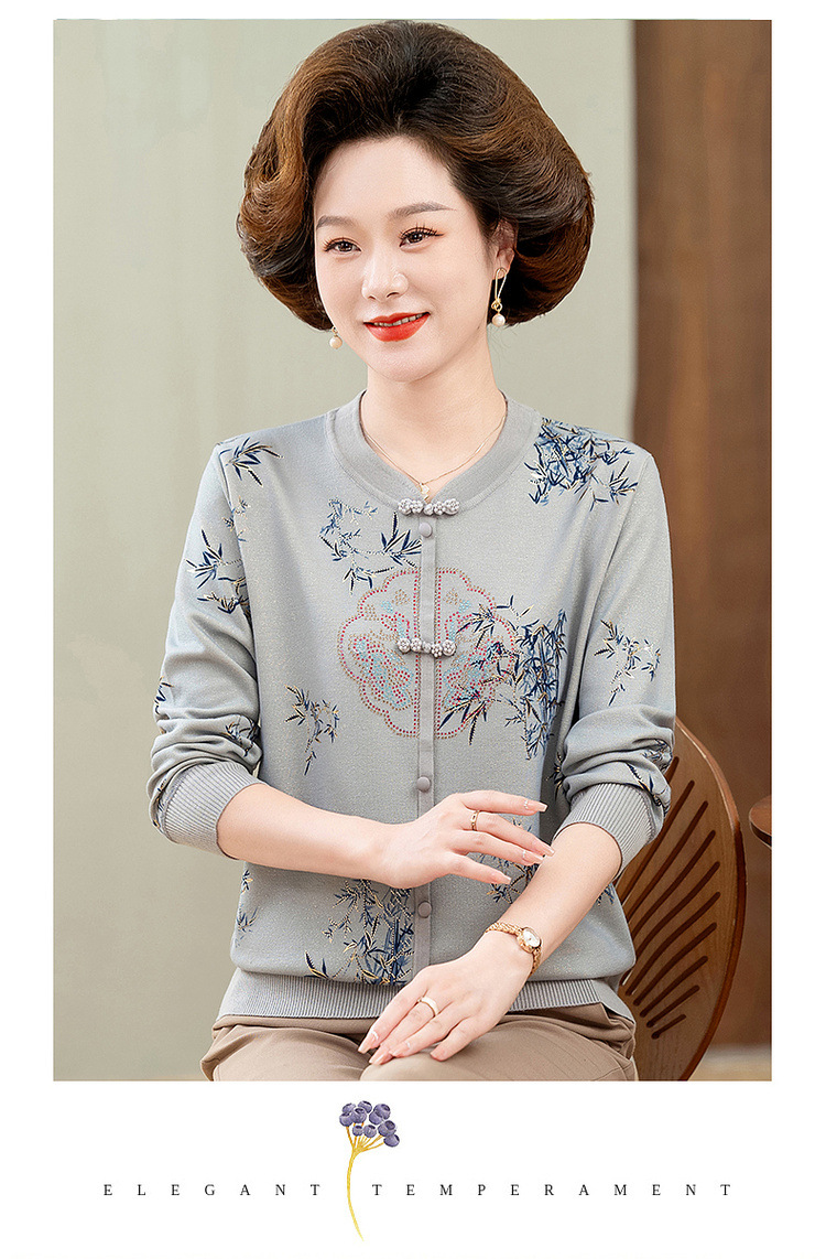 中高年母春装長袖カーディガン唐装上着女60歳70老人夏シャツ80