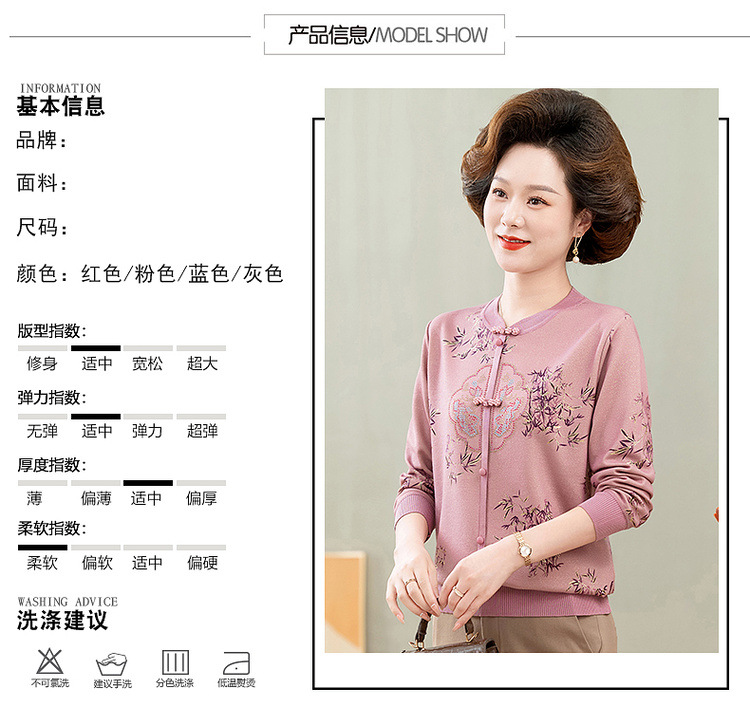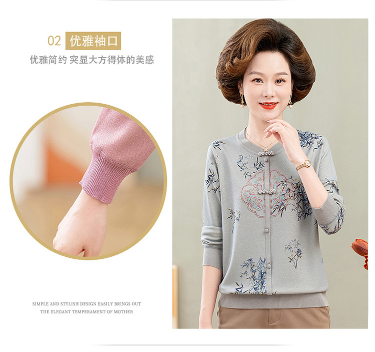 妈妈早秋薄款针织衫上衣中老年新中式国风毛衣洋气奶奶装秋装上衣