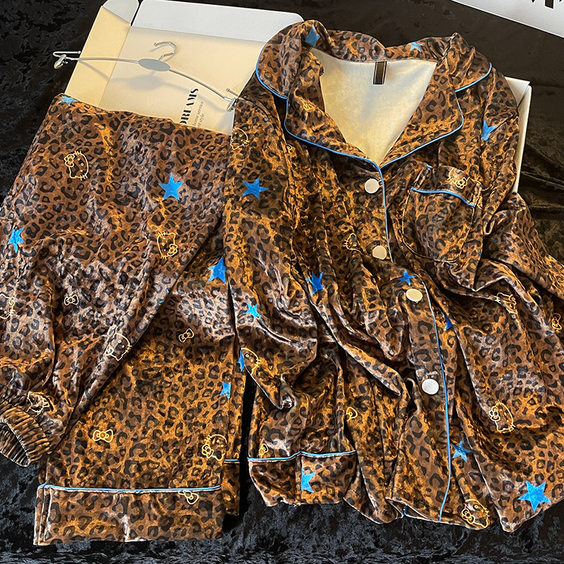 金丝绒豹纹Kitty睡衣女秋冬款长袖长裤甜美高级感保暖家居服套装
