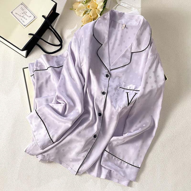 プリントパジャマ女性の夏のアイスシルク長袖の高級感があります。