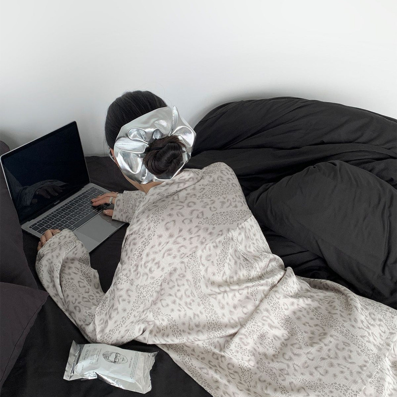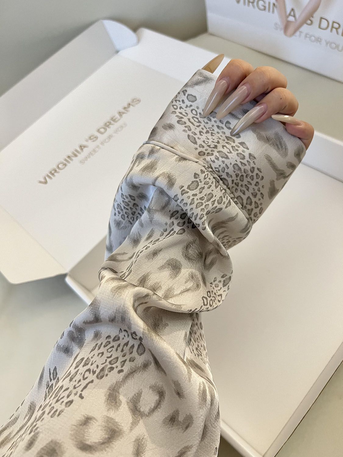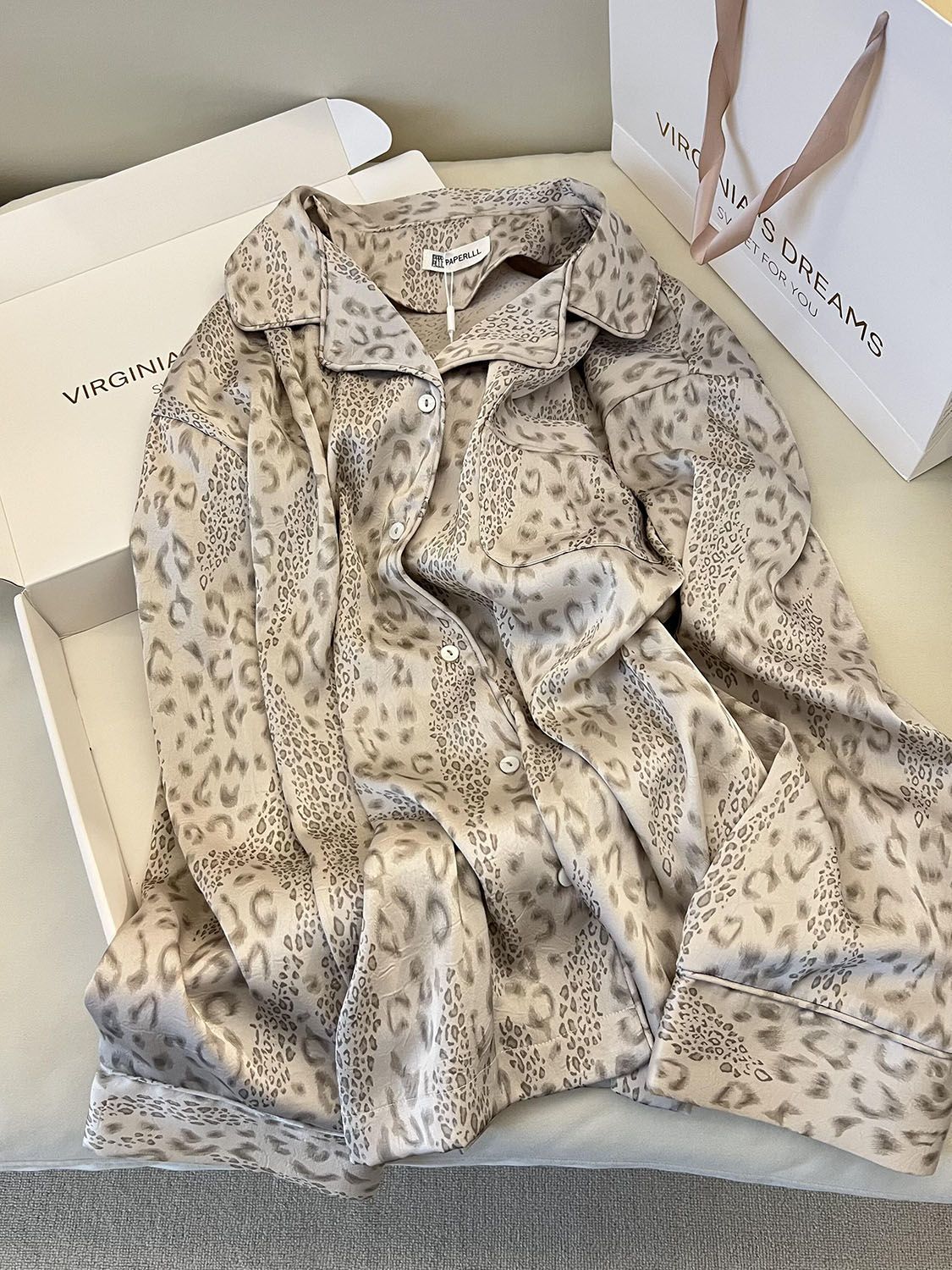 【韩系豹纹】25秋冬新款冰丝睡衣女缎面豹纹长袖宽松高级感家居服