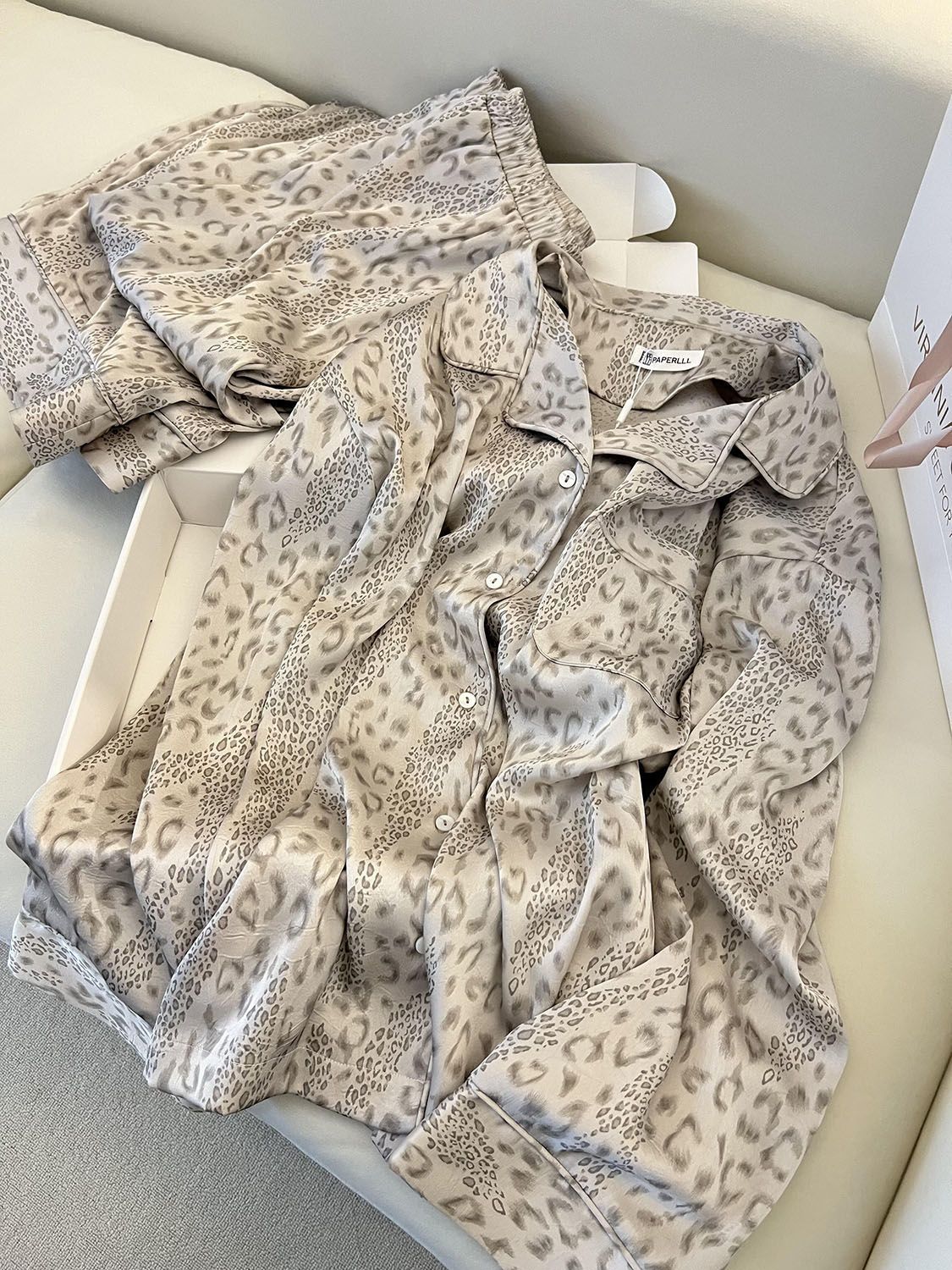 法式轻奢高级感豹纹印花缎面冰丝睡衣女款春秋季家居服套装可外穿