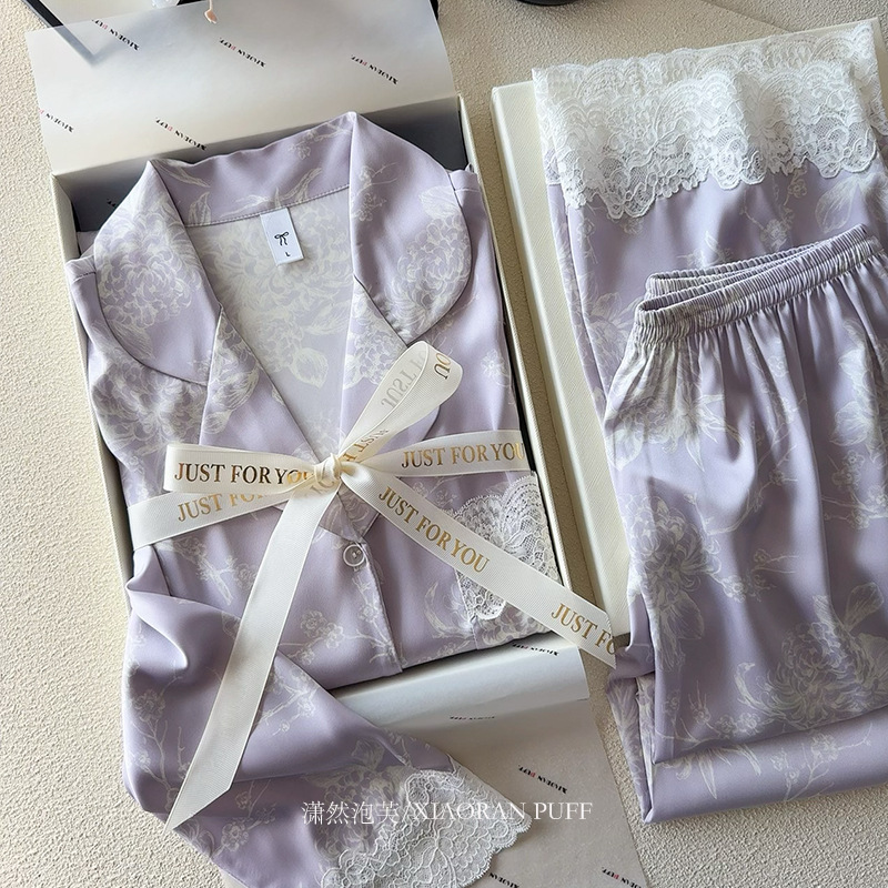 轻奢高级感花边花边冰丝睡衣女士长袖长裤薄款2025新款春夏家居服