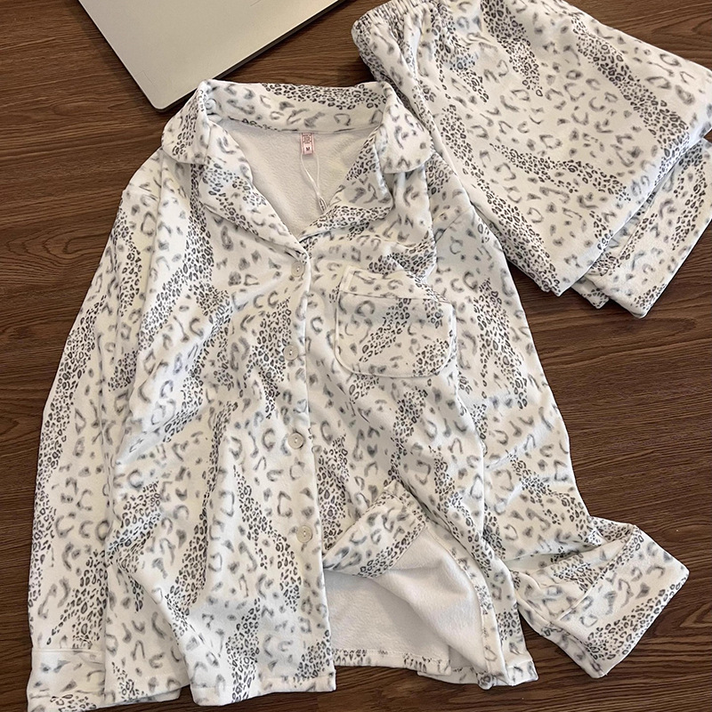 【海岛绒韩系豹纹】新款海岛绒睡衣女秋冬加绒加厚长袖豹纹家居服