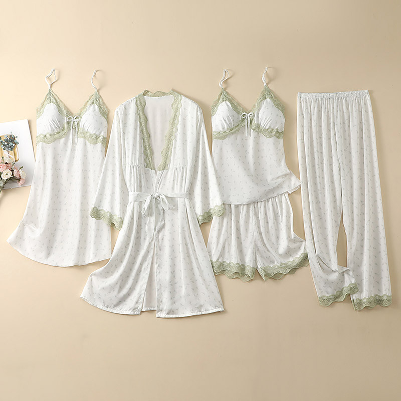 カシミヤのパジャマ4点セット女性のセクシーな胸のクッション付きの家の服秋の冬のパジャマの長袖のズボン