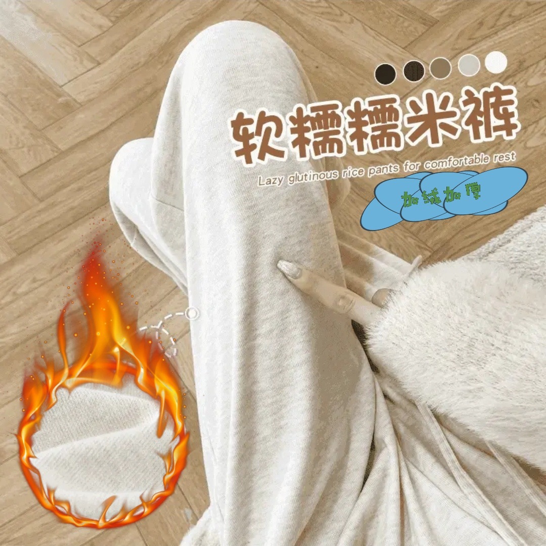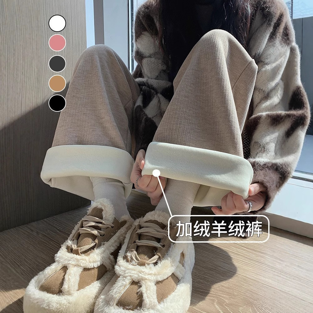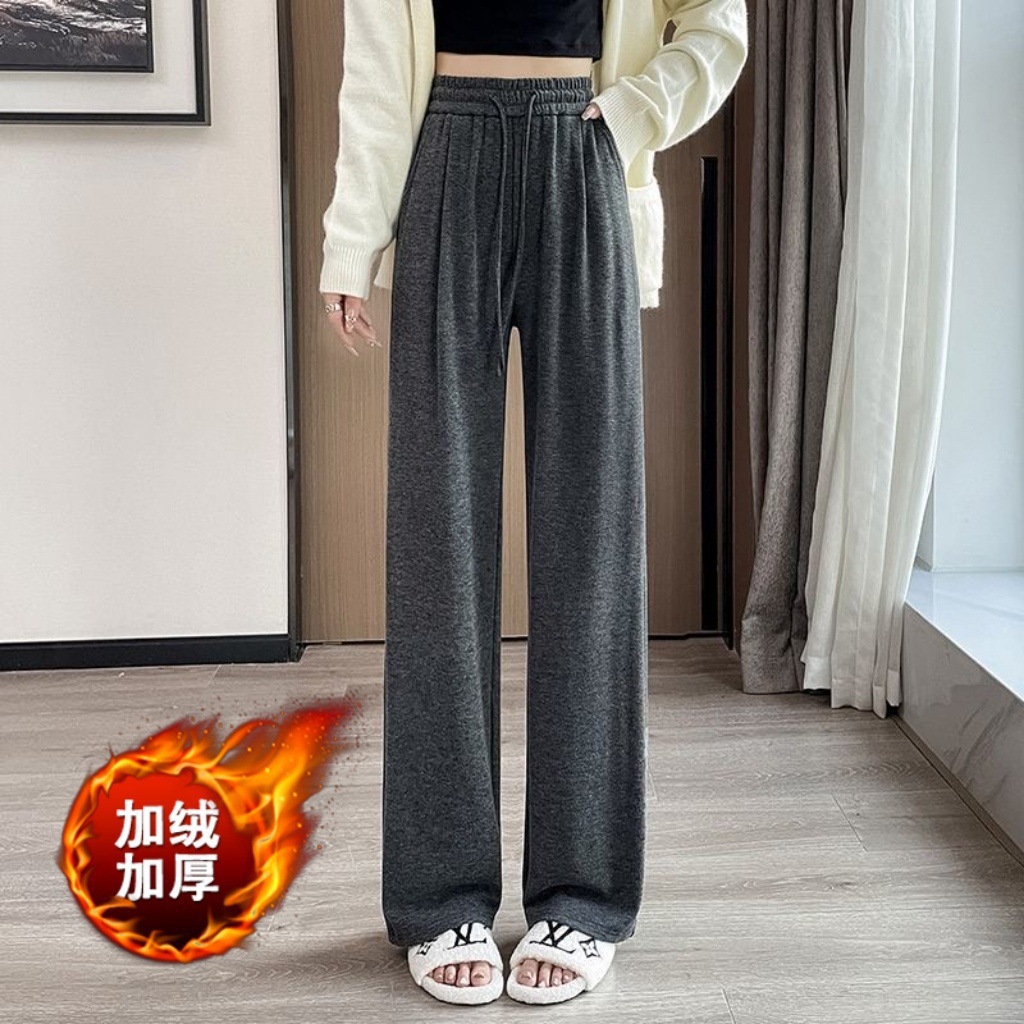 米白加绒糯米裤女秋冬2025新款加厚显瘦软糯直筒裤高腰垂感阔腿裤