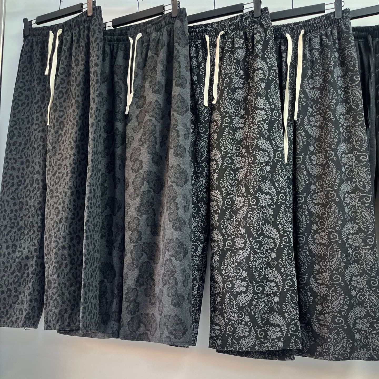 腰果花印花阔腿裤女秋冬款宽松百搭糯米绒豹纹休闲直筒高腰阔腿裤