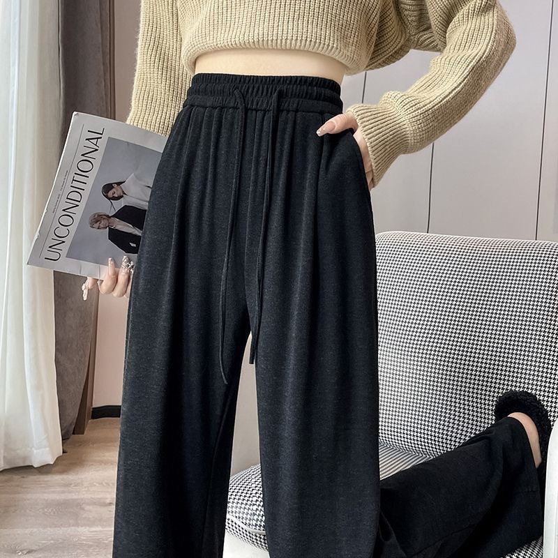女性用ソフトカシミヤワイドレッグパンツ2025秋冬、ベルベットレディースパンツ、厚みのあるハイウエストドレープ、ゆったりとしたストレートカジュアルパンツ