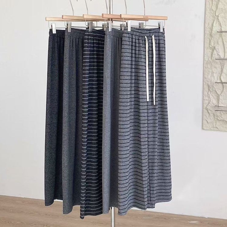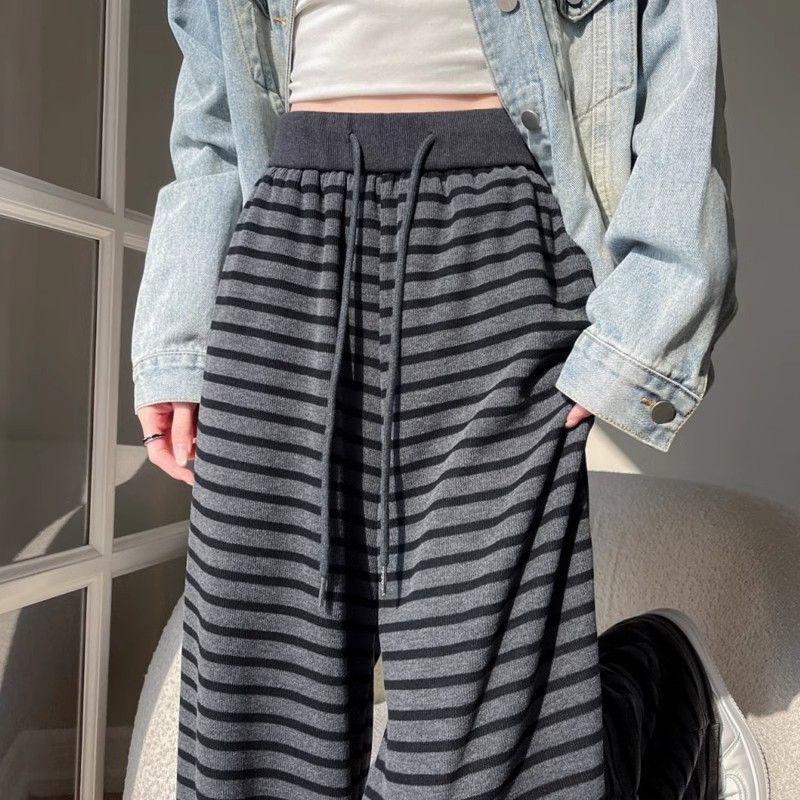 新型のもち米のストライプの広腿のズボンは厚いペンダント感のズボンの春と秋の冬の高腰がやせています。