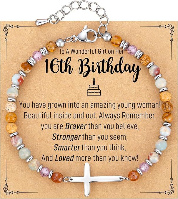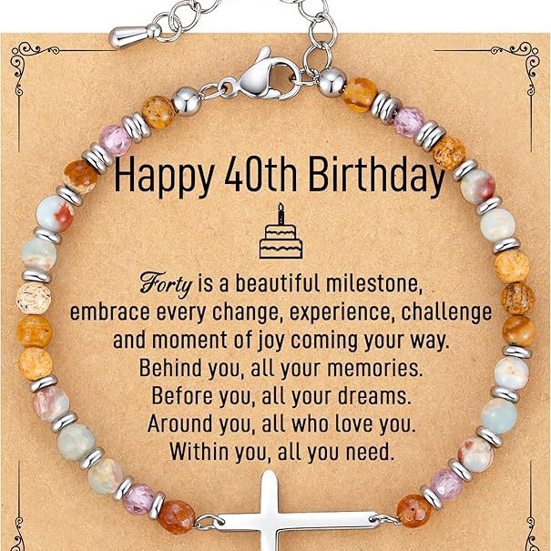 亚马逊手串寿山石天然石手链可调节个性十字架串珠生日带卡片