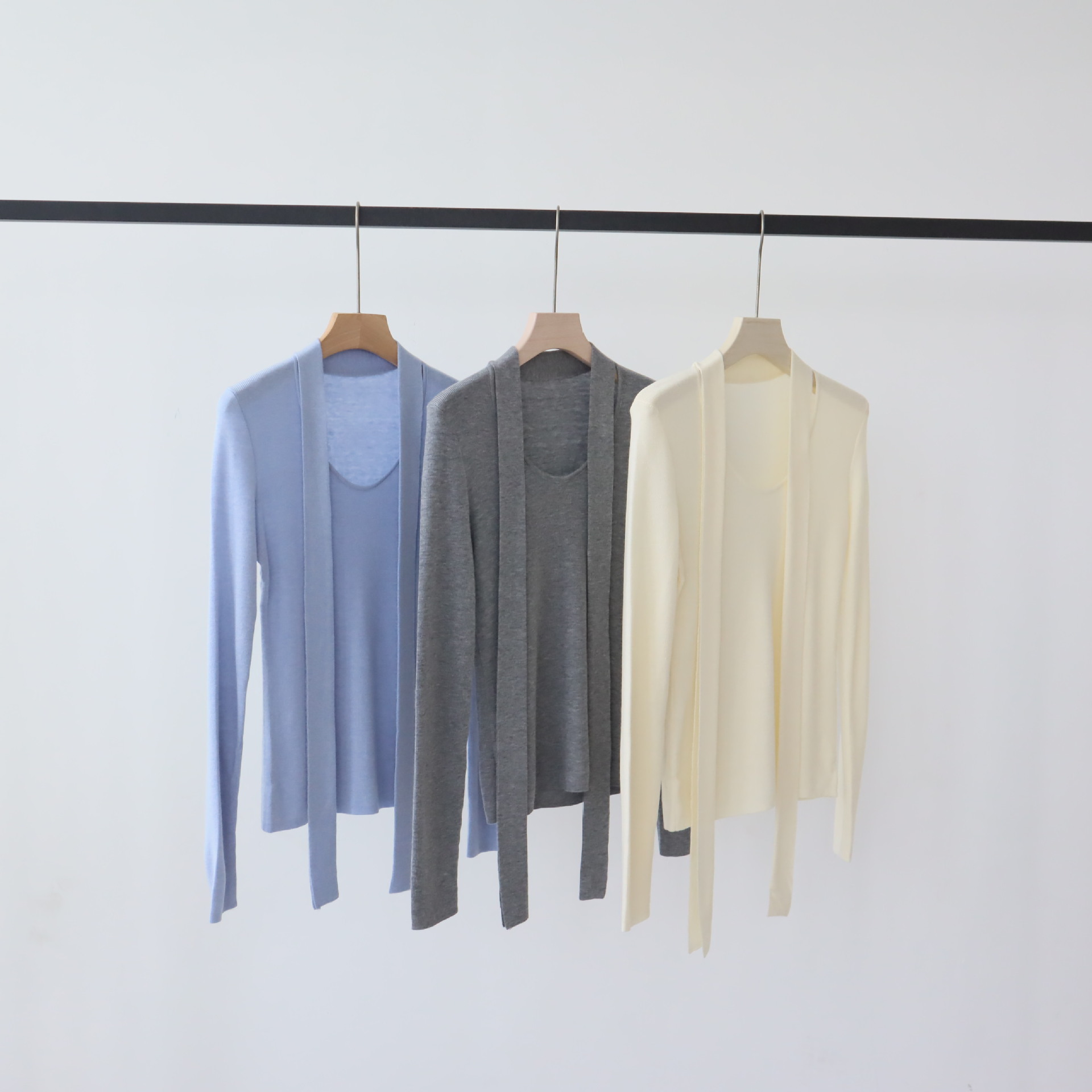 リヨセルテンセル春と秋の長袖セーターオープンデザインシャツストラップショールサスペンダー付きカーディガン通気性