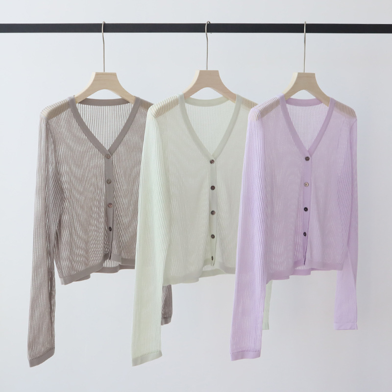 ライゼル天糸春夏新作ニットカーディガン薄手女性ブラウス空調シャツ夏長袖上着レディースコート