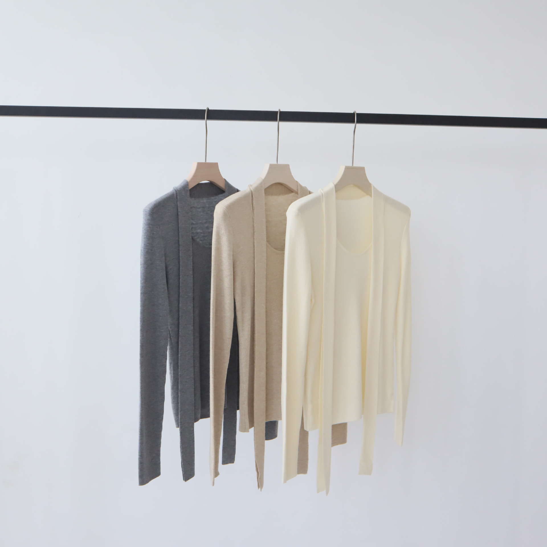 ライゼル天糸早春新作ニットカーディガン長袖のデザイン感が透けています。