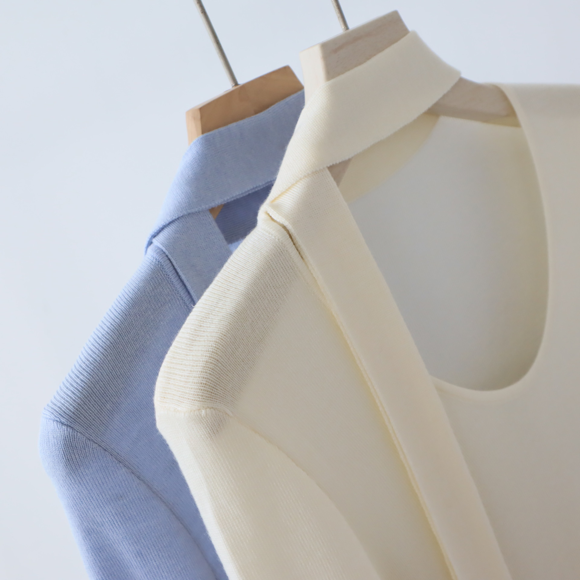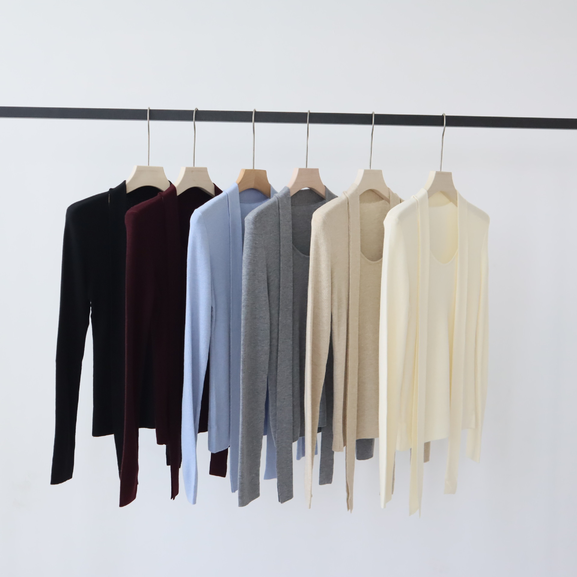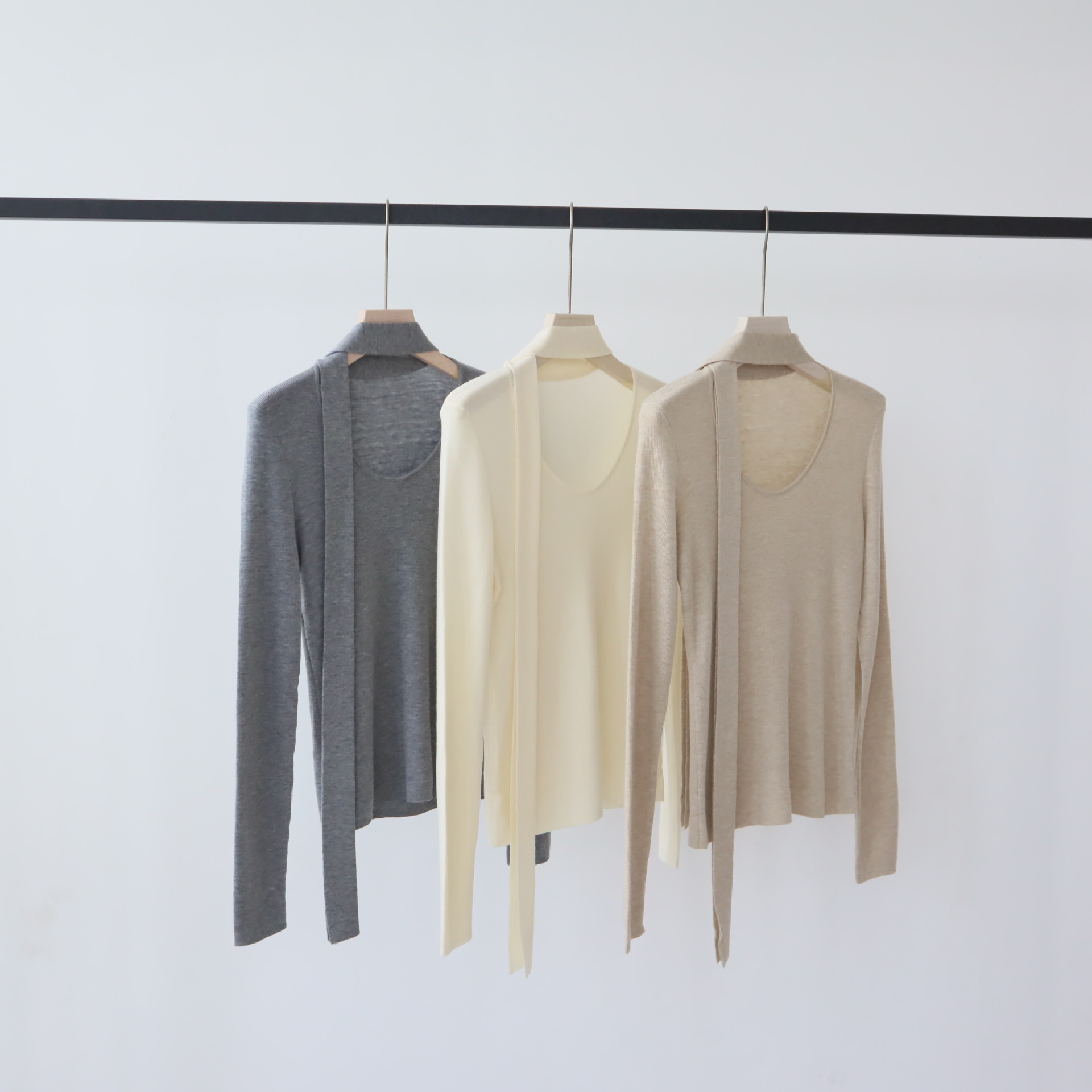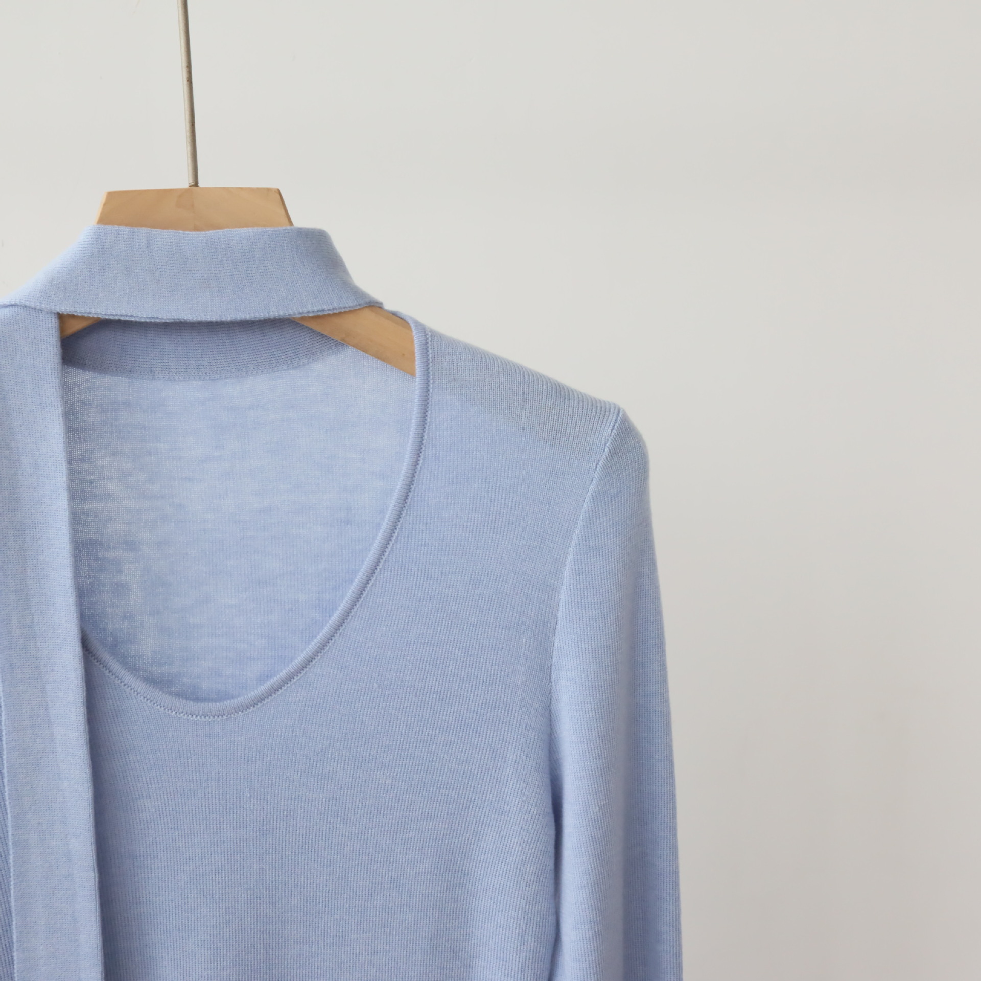 十三行女装早秋羊毛混纺针织衫长袖打底衫高级感围巾领秋季毛衣女