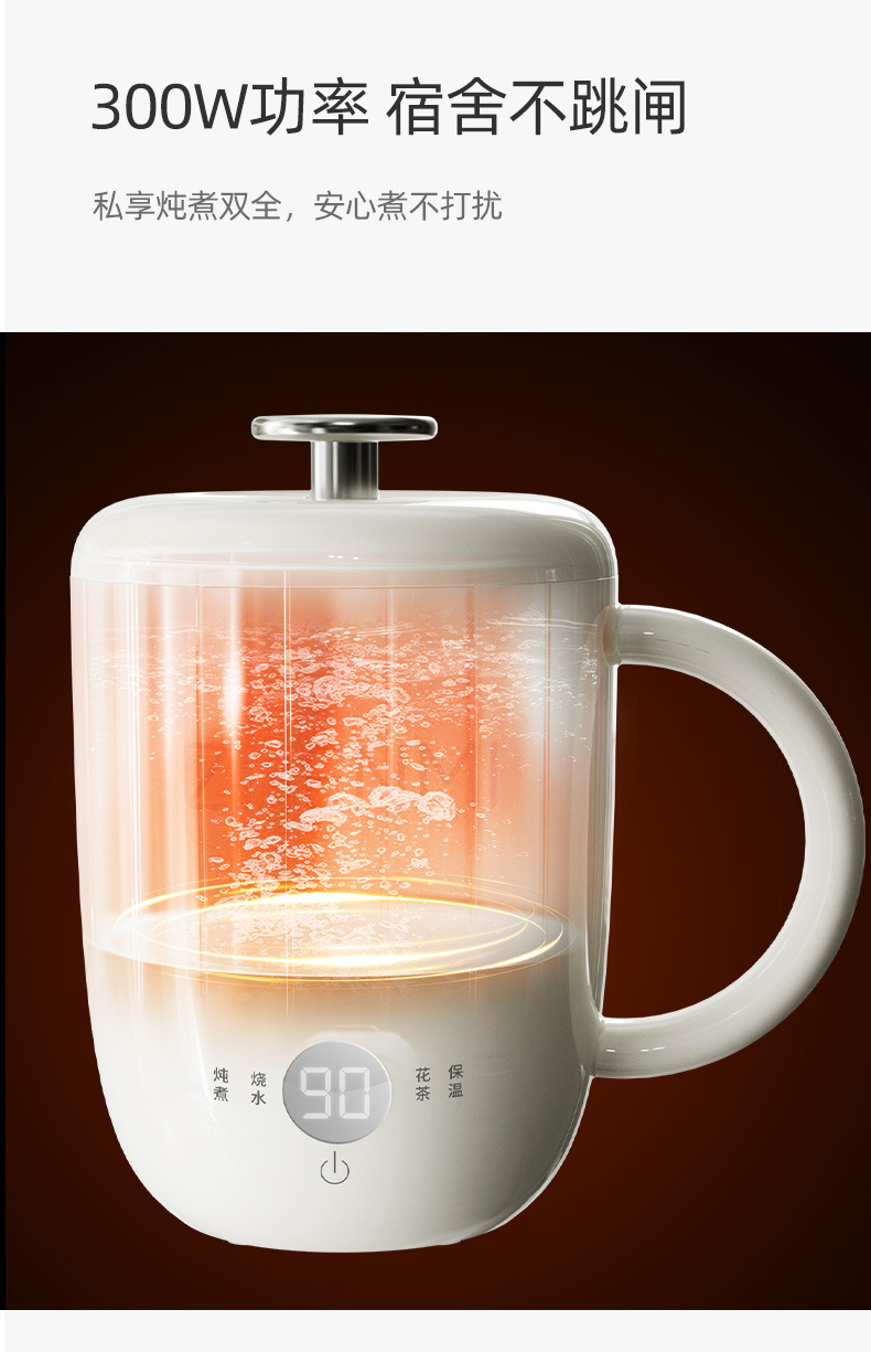 家用炖煮一体电炖杯旅行便携烧水办公室热牛奶多功能不粘电热水杯