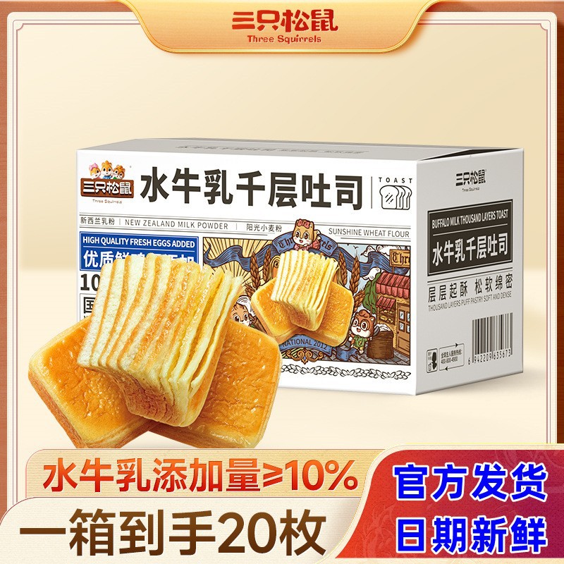 预三只松鼠国民好烘培水牛乳千层吐司1kg箱装进口全脂奶粉早餐零3