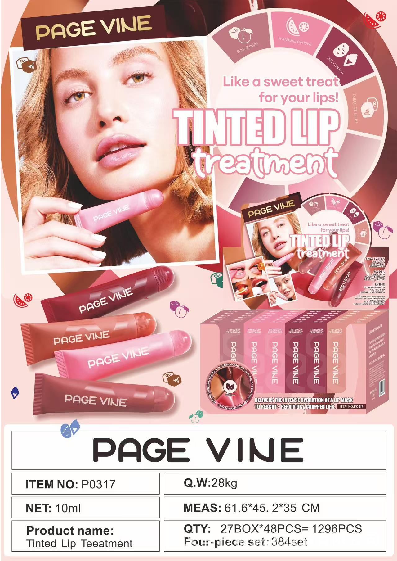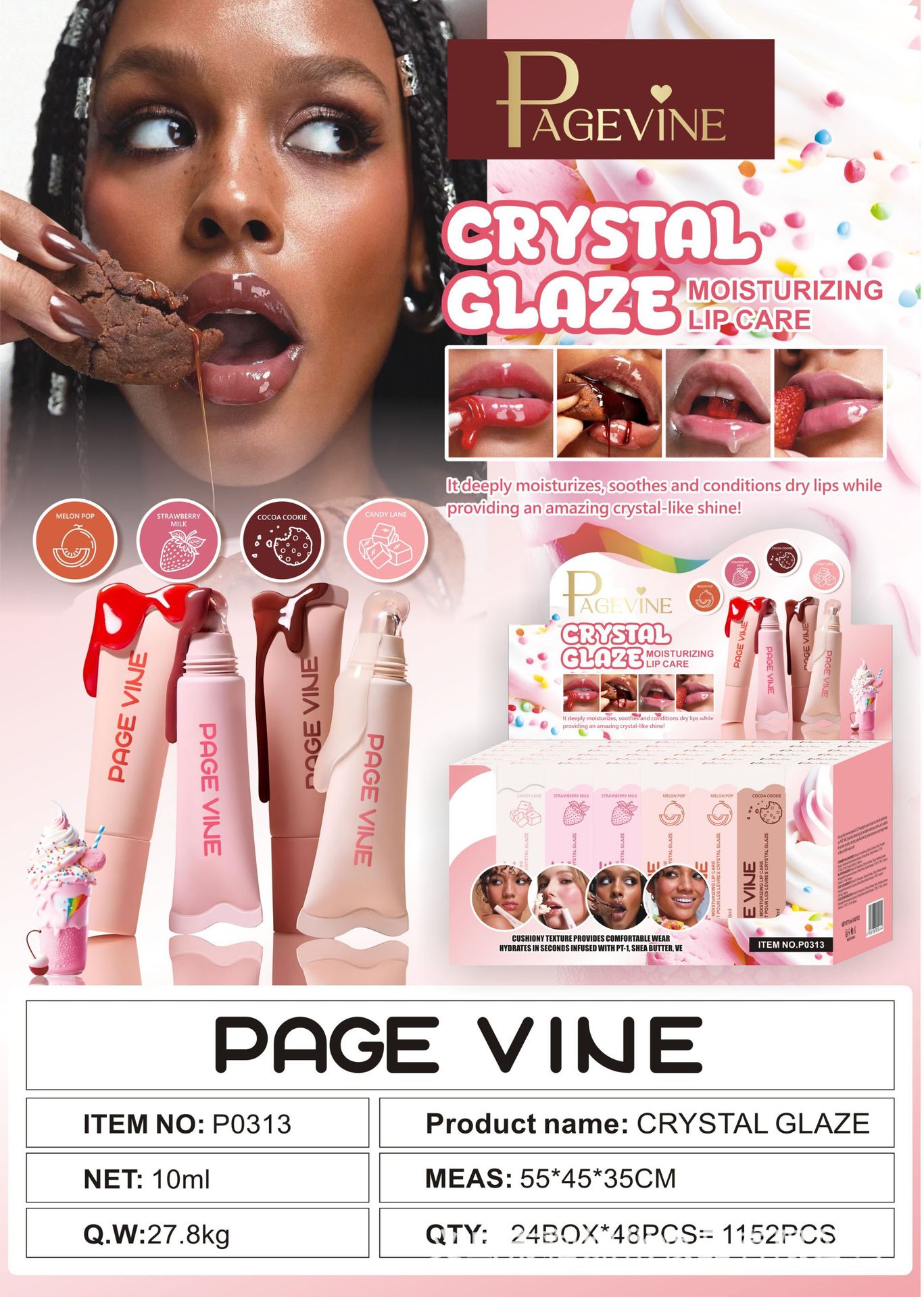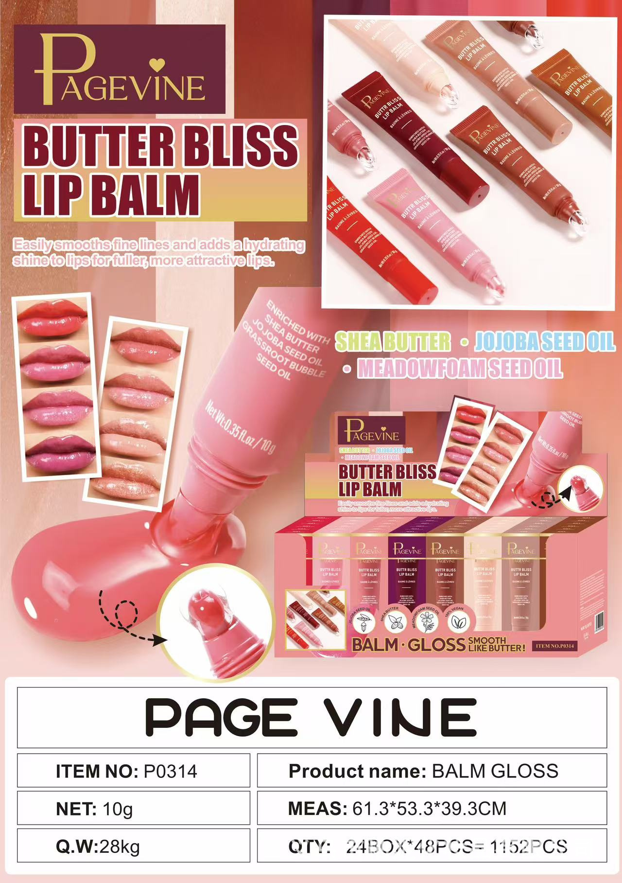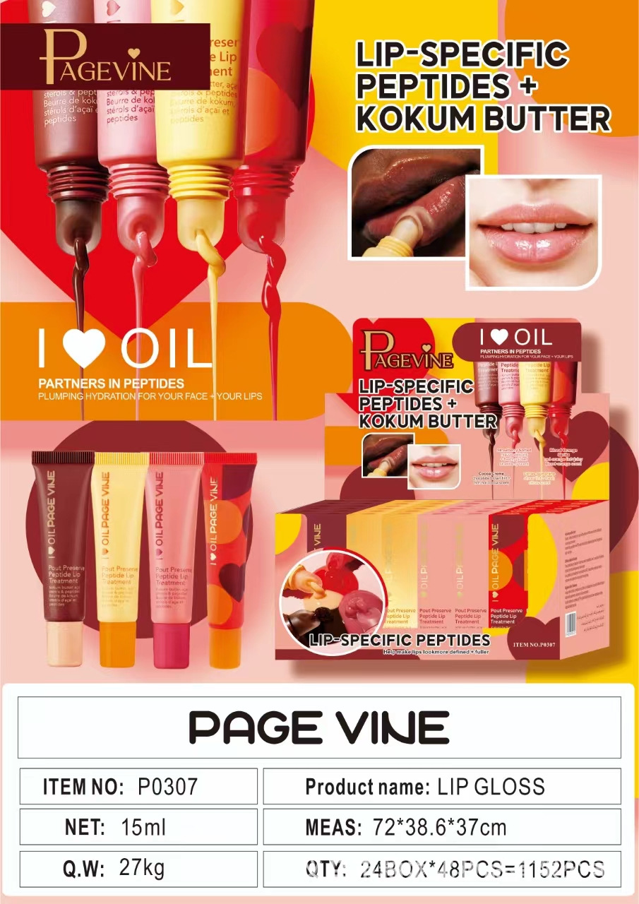 PAGE VINE 8色镜面珠光软管黄油润唇膏嘟嘟唇蜜液体多肽唇釉唇彩