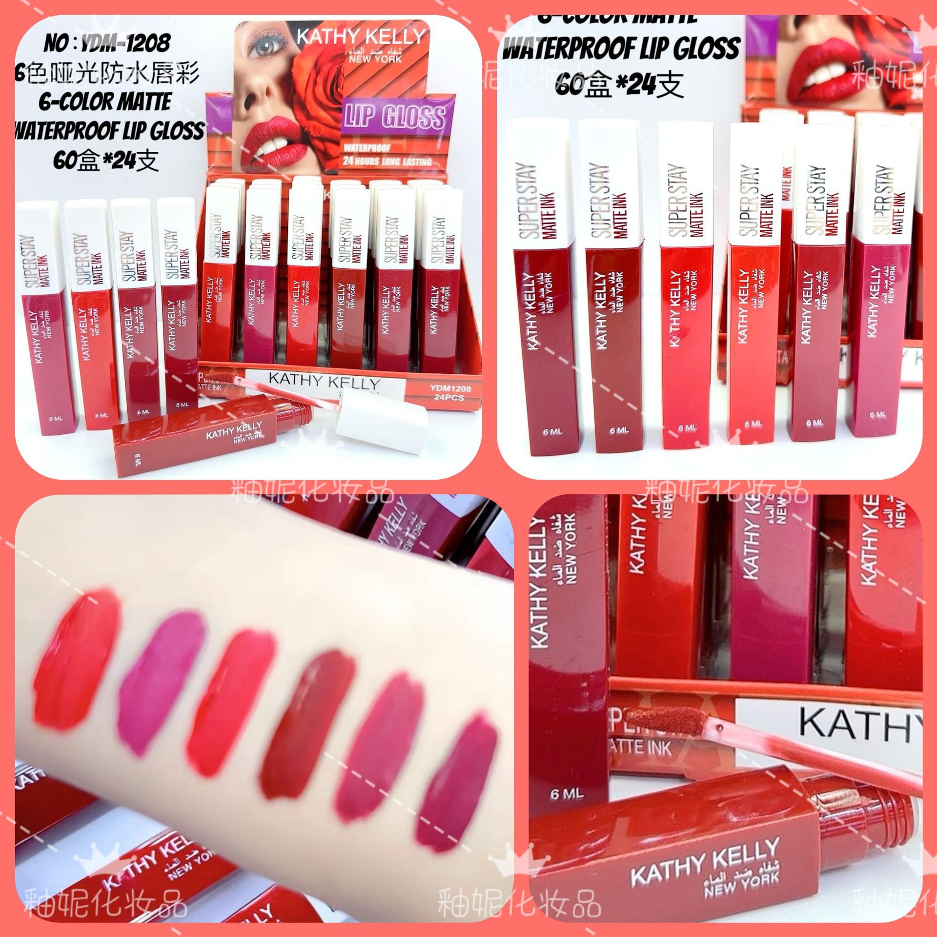 クロスボーダー 24 パックストロベリーガールリップスティックウォーター 6 色水光沢ガラス温度変化リップ釉薬保湿防水リップグロス