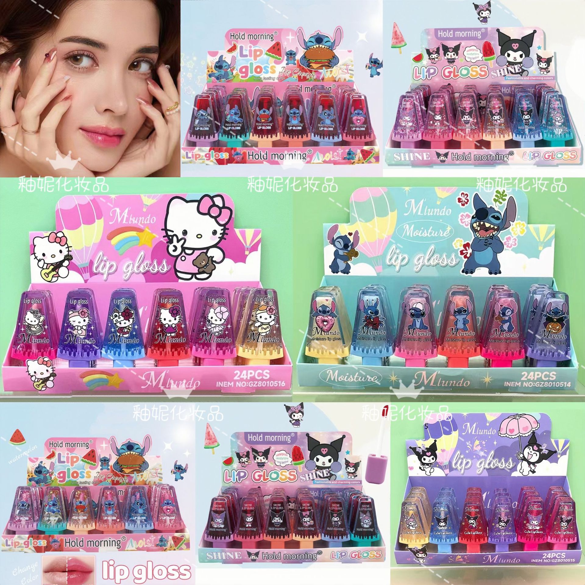 Mlundo漫画アイスクリームスイカ保湿唇釉薬口紅水光鏡面ガラス唇はカップをつけずに色が落ちない