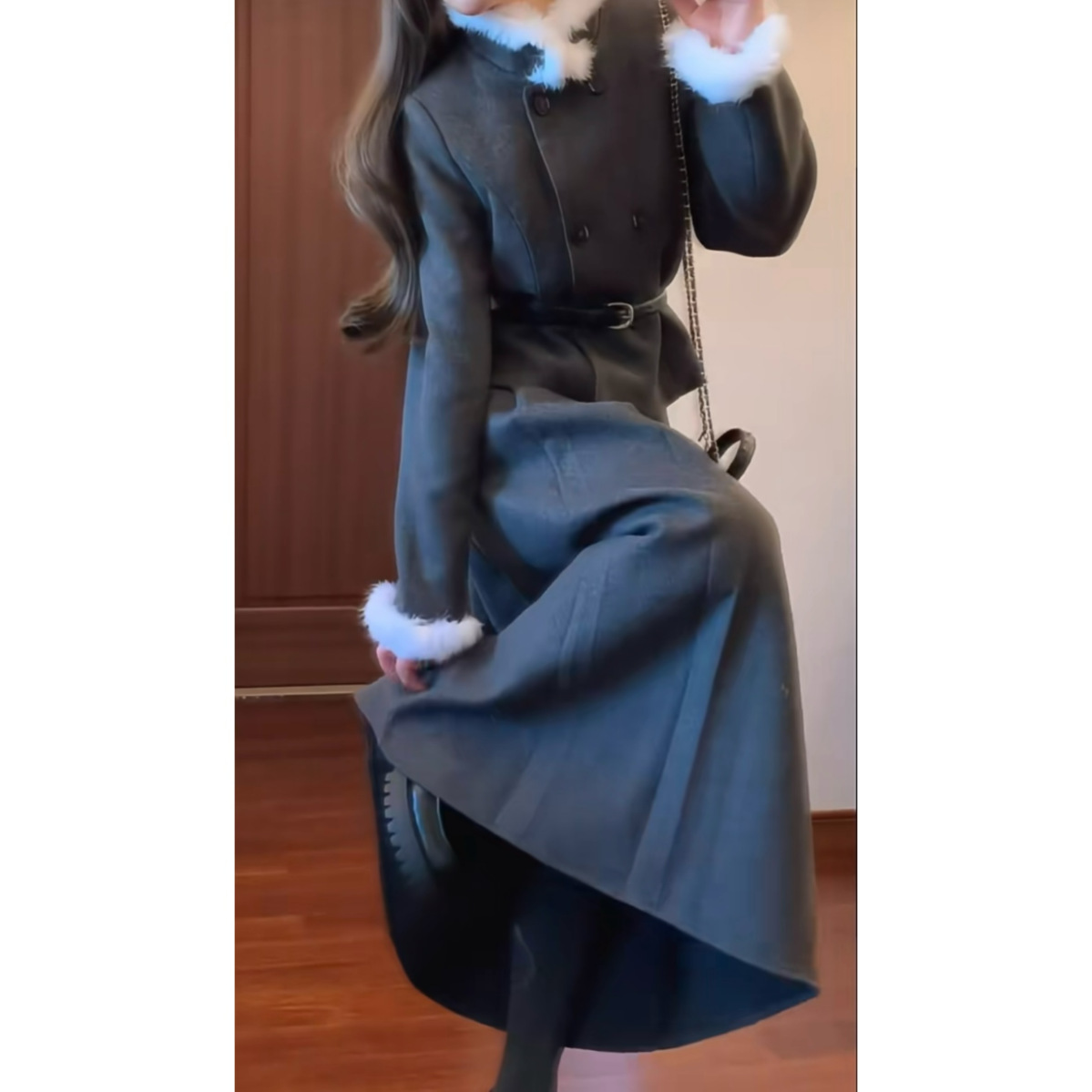 財閥大さんの雰囲気感毛襟ダブルボタン小香風コート女性冬高腰包尻半身スカートスーツ