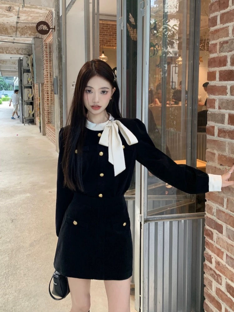 小香风套装裙两件套蝴蝶结灯芯绒外套富家千金女秋冬高腰半身短裙