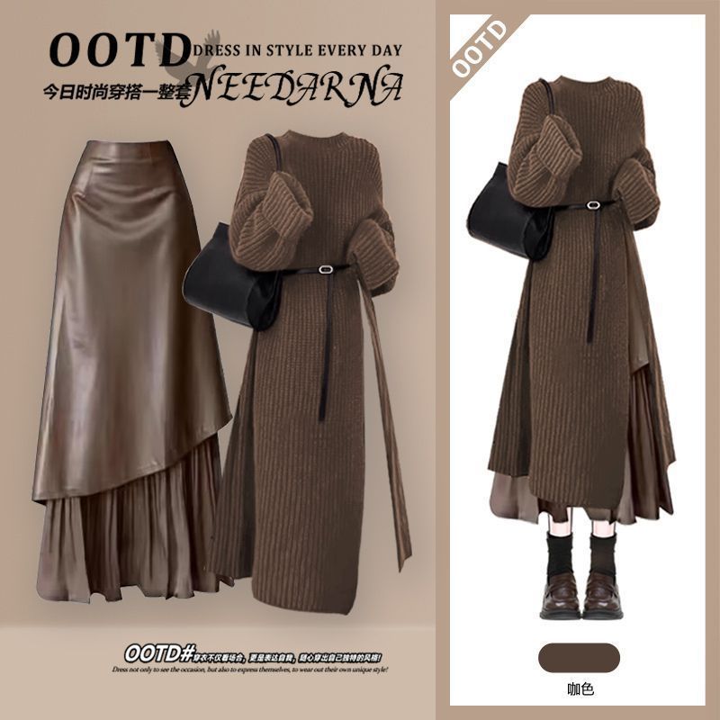 冬季穿搭一整套女新款感长款毛衣裙气质显瘦半身裙两件套